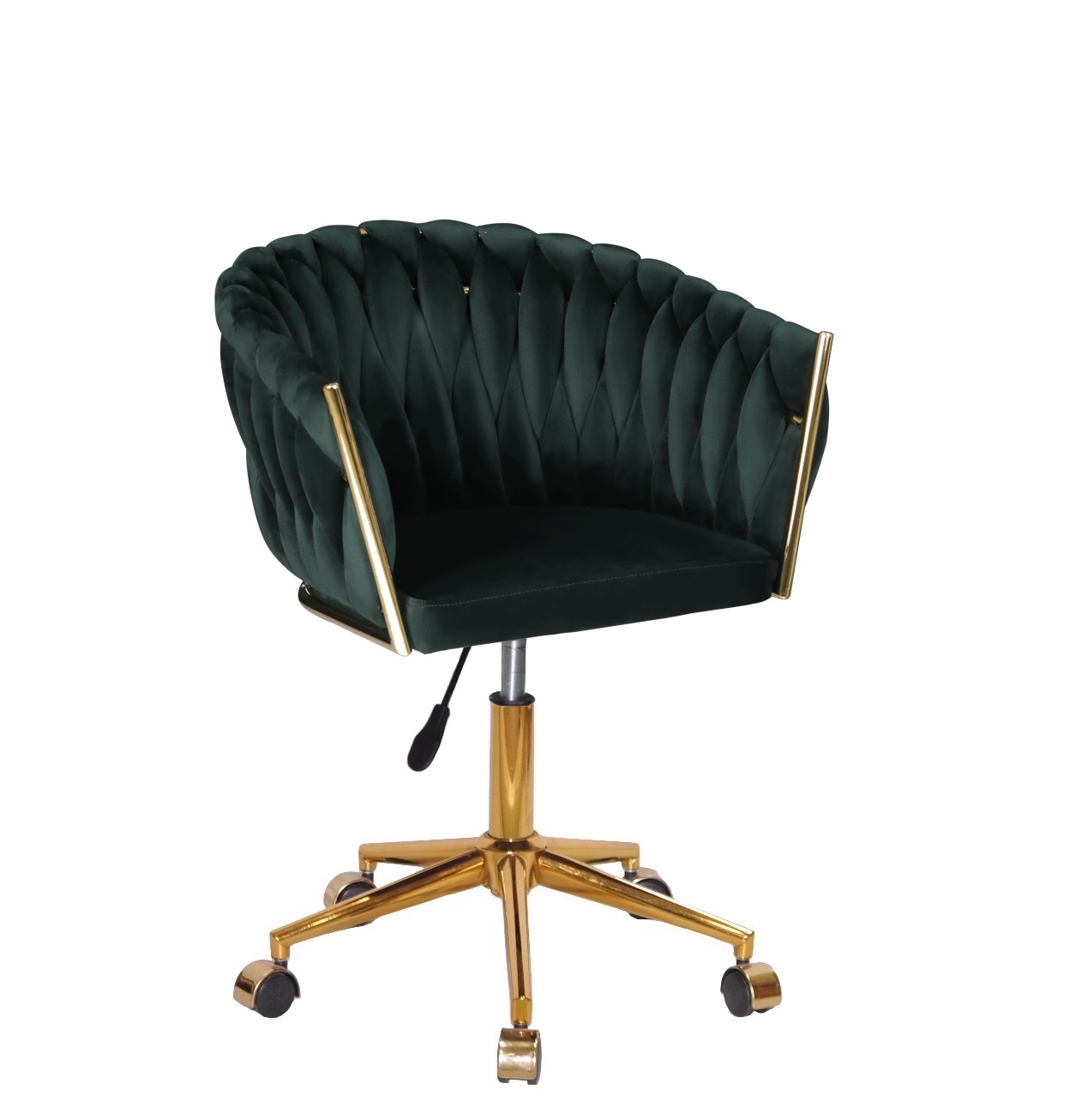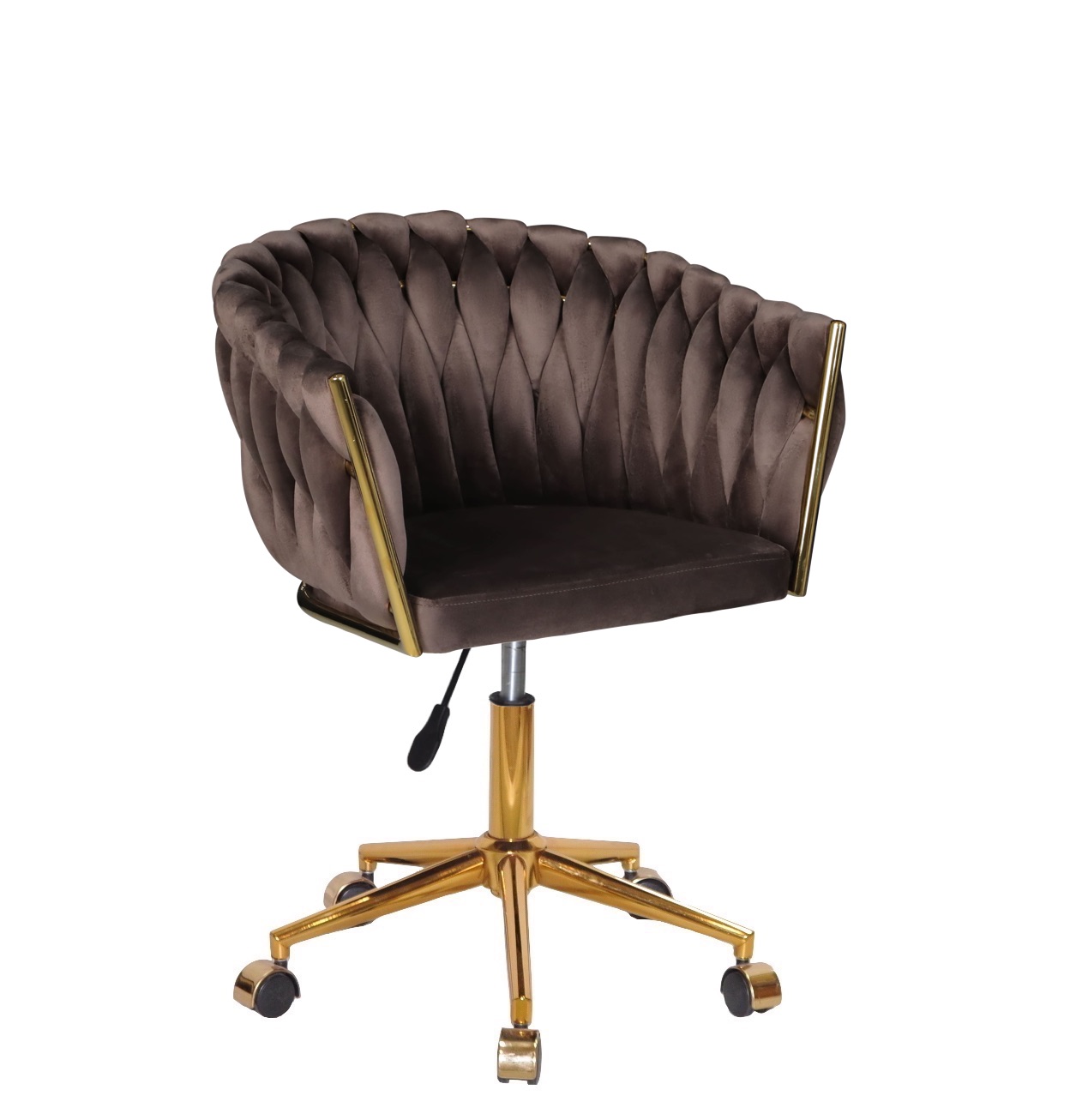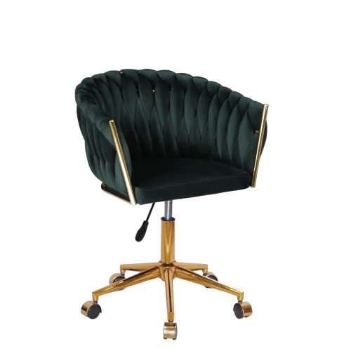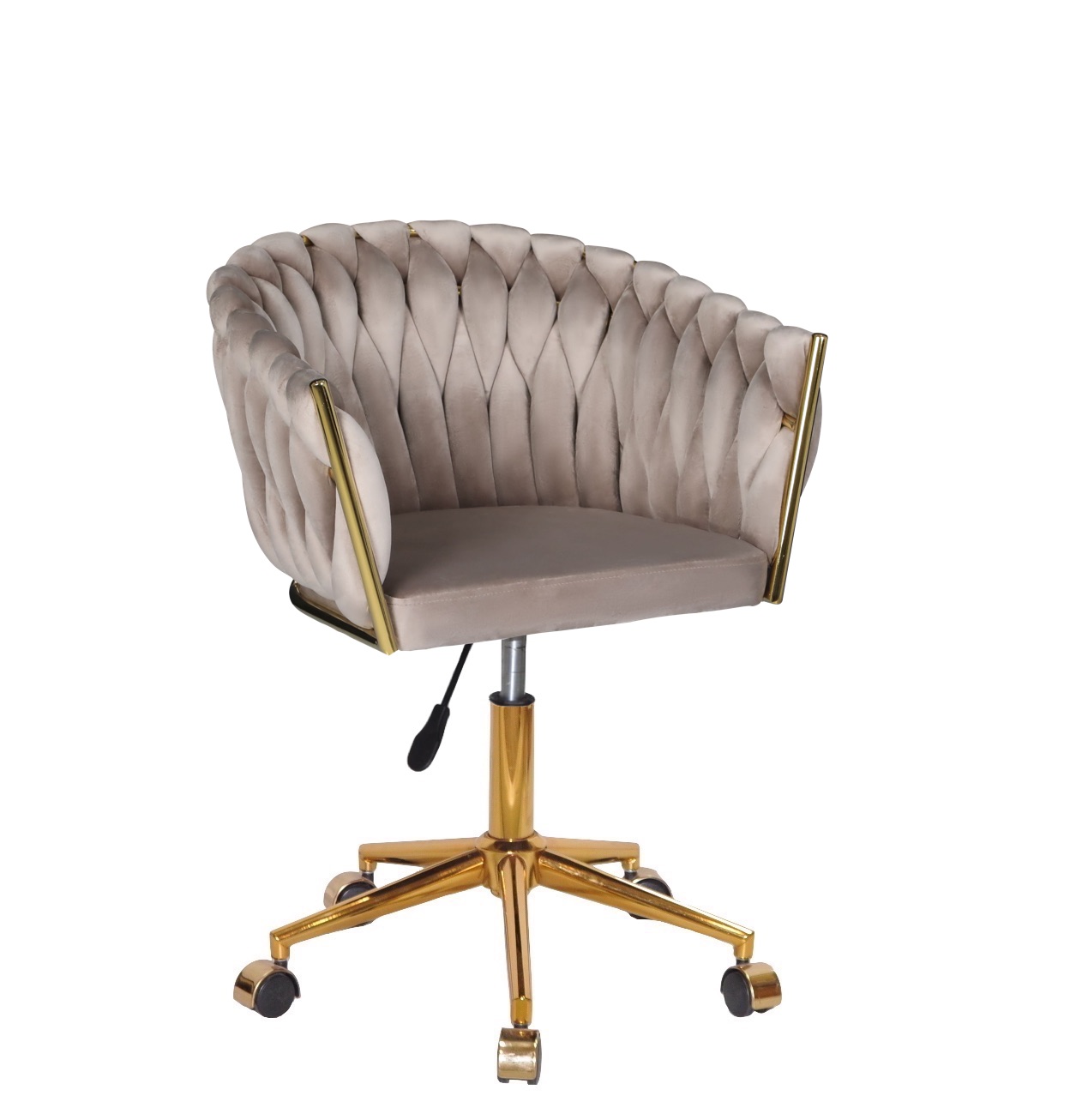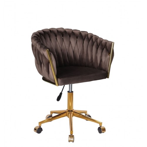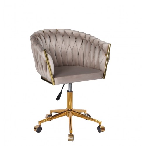 Гламурне крісло в салон краси велюрова оббивка, з золотистою хрестовиною на колесах, поворотне з регулюванням висоти