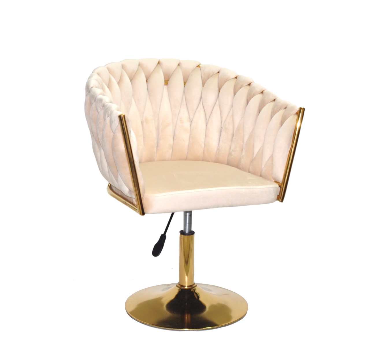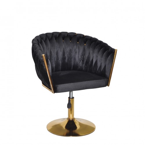 Велюрове крісло з підлокітниками Lola базується. Крісло Лола має м'яку оббивку, у вигляді плетених кіс із велюру. М'яка спинка має чудову бічну підтримку спини, а зручне сидіння та підлокітники допоможуть провести тривалий час з комфортом, сидячи у кріслі. Дизайн крісла легко впишеться в інтер'єр Вашого будинку, апартаментів, офісу, салону краси, перукарні, ресторану, готелю. За стилем крісло Lola підійде як в інтер'єрі в стилі гламур, так і в інтер'єри в стилях модерн і hi-tech. Крісло ідеально підходить для робочого місця офісного працівника, адміністратора як стілець для майстра манікюру (педикюру) в салон краси.