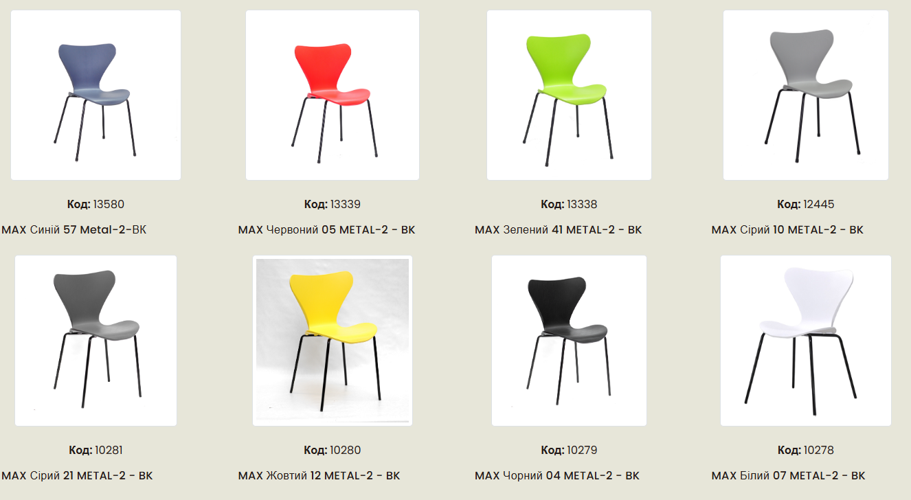 Стілець Max (Макс) - творіння дизайнера Arne Jacobsen з колекції Series 7 - один з найбільш продаваних стільців у світі. Його можна побачити по всьому світу, від музеїв, кафе і ресторанів, до корпоративних залів засідань і конференц-залів. Дуже вдала модель стільця, у якої 3 основні переваги: прекрасний, перевірений багатьма інтер'єрами, дизайн, міцний металевий каркас, на якому встановлене міцне поліпропіленове сидіння, створене з урахуванням усіх вимог ергономіки, з вигином краю сидіння плавно вниз, що унеможливлює тиск на ноги людини, яка сидить, і безпрецедентно низька вартість, можна штабелювати в стопку.