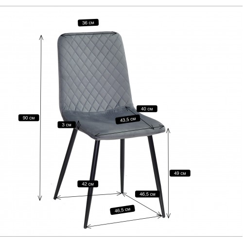 Параметри: ширина - 43,5 см, глибина - 40 см, висота спинки - 41 см, висота сидіння - 49 см, висота з урахуванням спинки - 90 см.