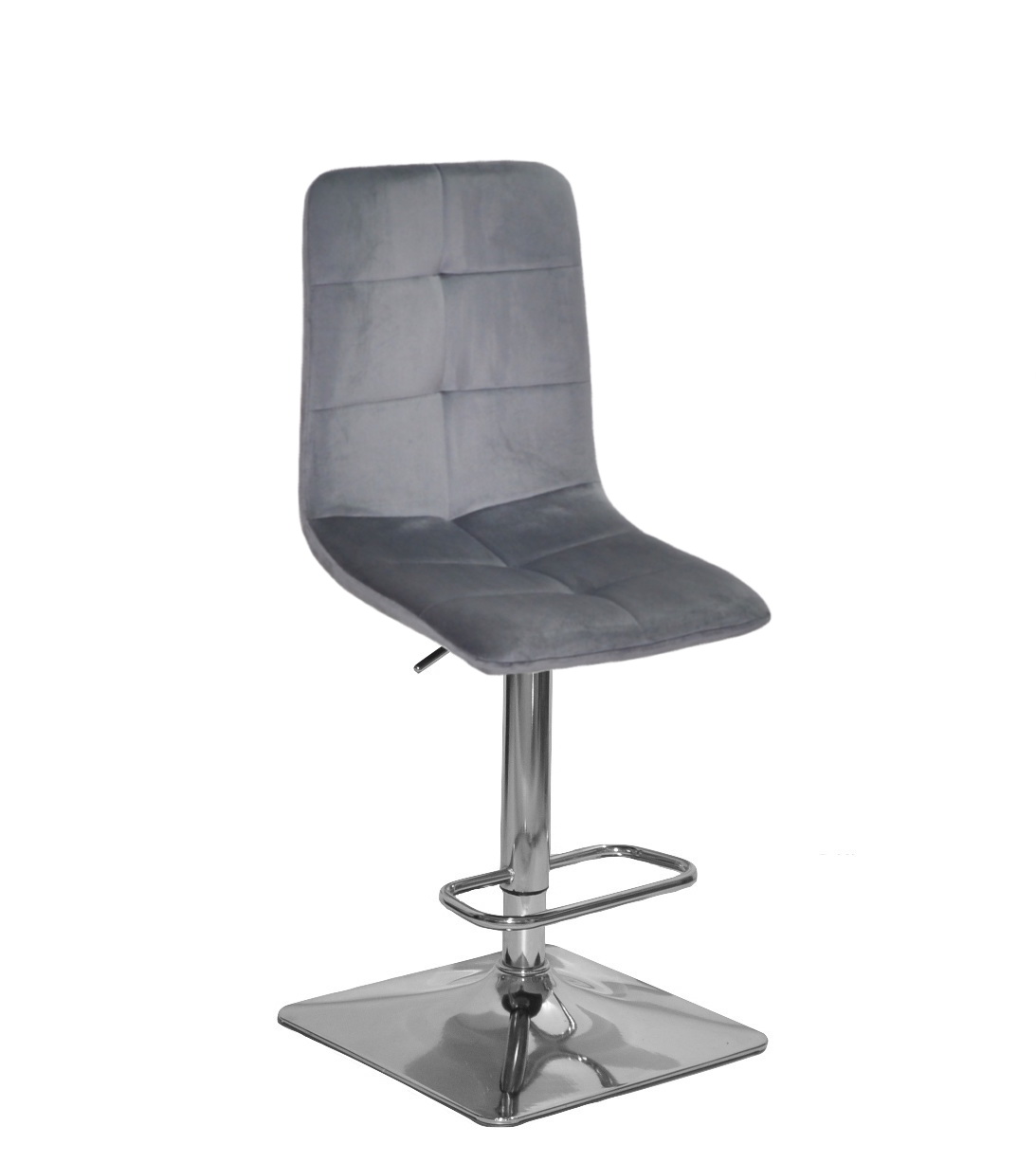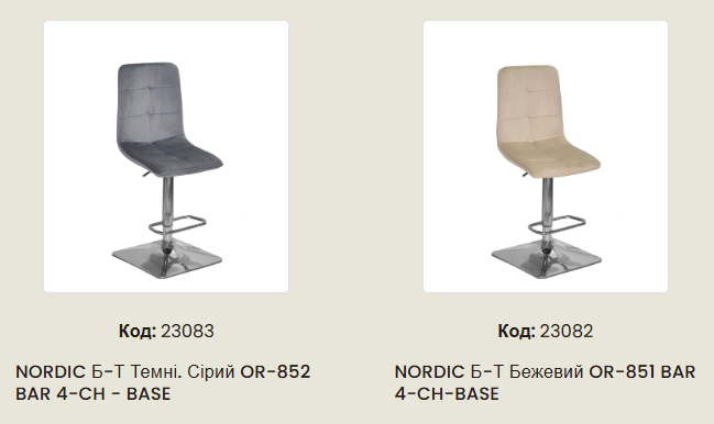 М'який барний стілець Nordic, на міцному золотом металевому каркасі, дуже зручний у посадці. Барний стілець Нордик можна часто побачити в салонах краси, інтер'єрах кафе-бутиків, ресторанів, зон відпочинку СПА, готелів, а також стілець прекрасно впишеться у вишуканий інтер'єр Вашої оселі або квартири. Спинка та сидіння обтягнуті велюровою тканиною, а основою стільця є металевий каркас (4 ніжки). Сидіння і спинка прострочені великими квадратами.