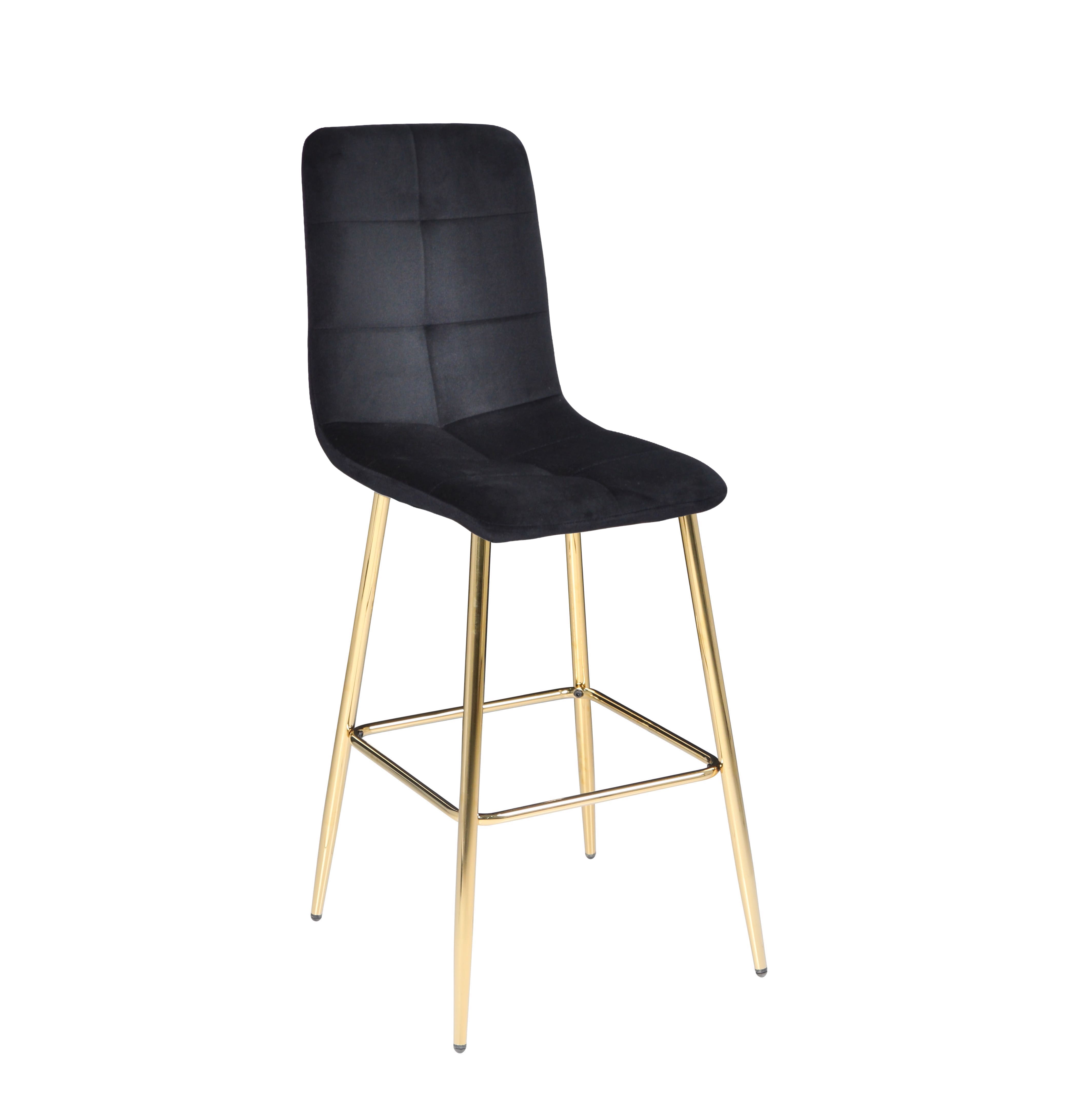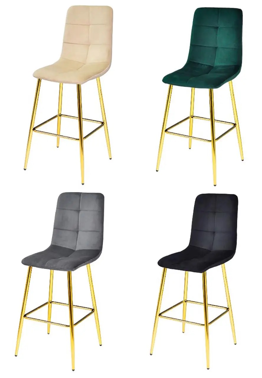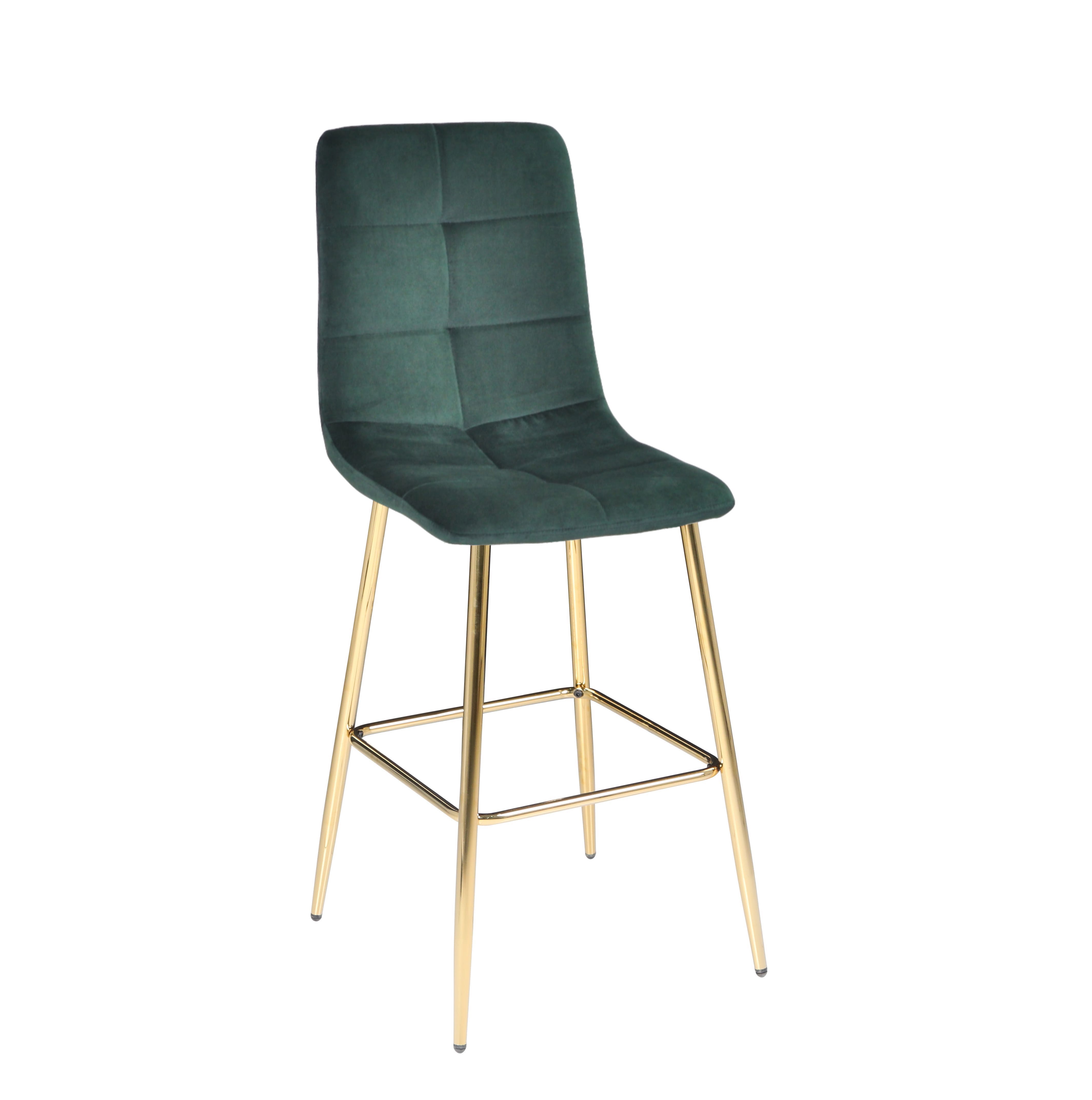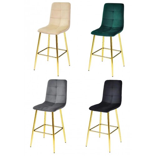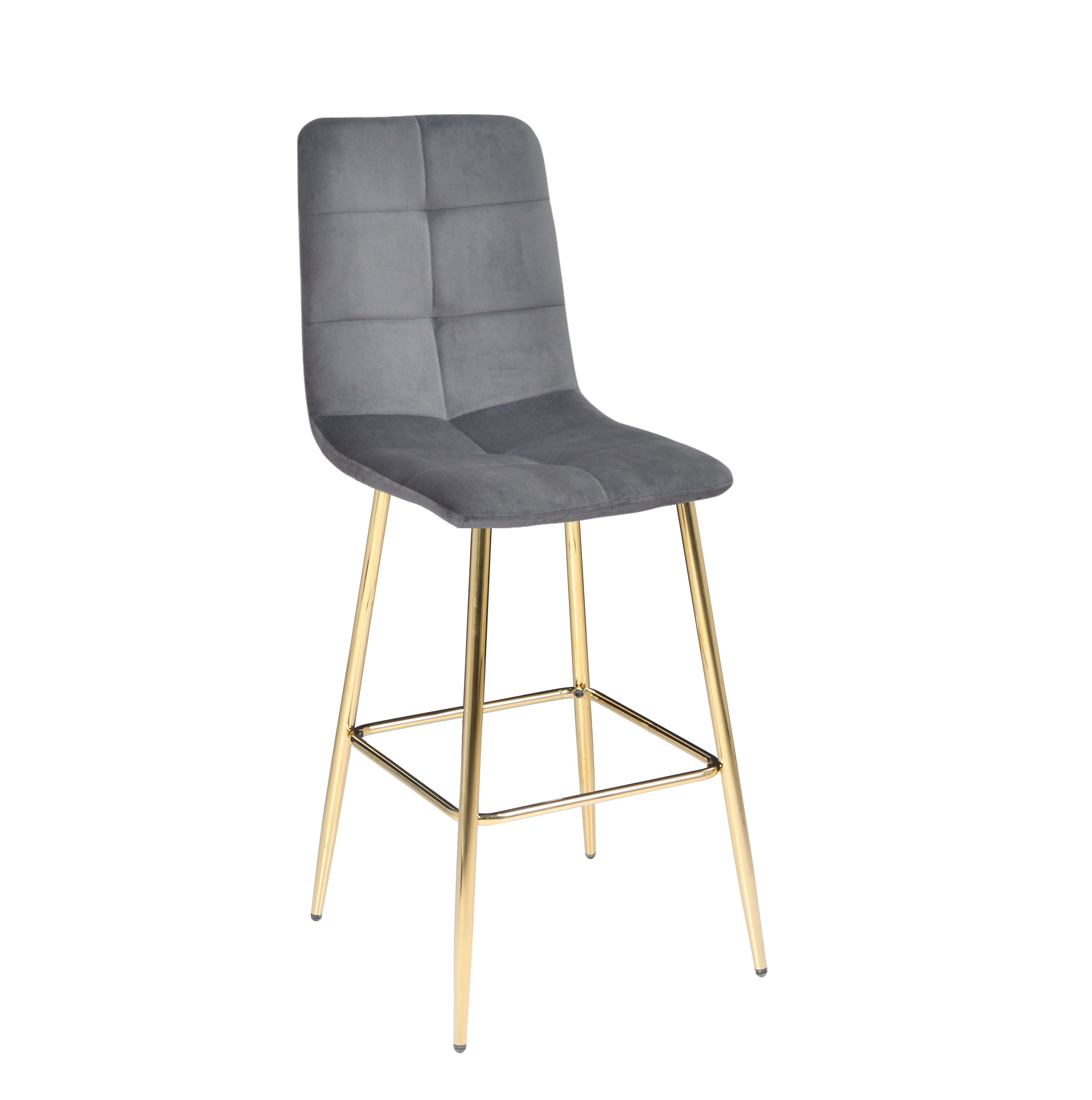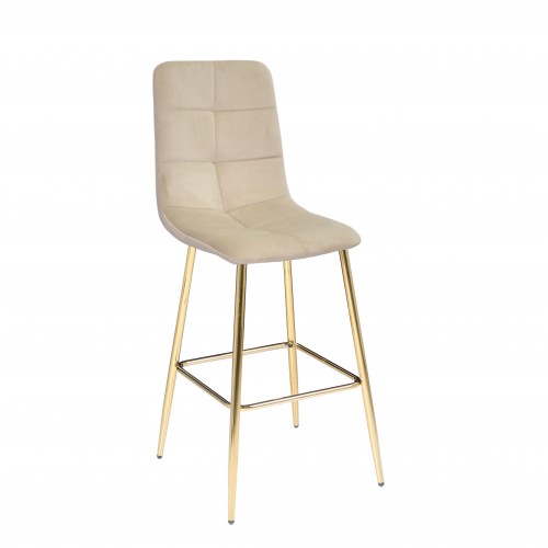 М'який барний стілець Nordic, на міцному золотом металевому каркасі, дуже зручний у посадці. Барний стілець Нордик можна часто побачити в салонах краси, інтер'єрах кафе-бутиків, ресторанів, зон відпочинку СПА, готелів, а також стілець прекрасно впишеться у вишуканий інтер'єр Вашої оселі або квартири. Спинка та сидіння обтягнуті велюровою тканиною, а основою стільця є металевий каркас (4 ніжки). Сидіння і спинка прострочені великими квадратами.