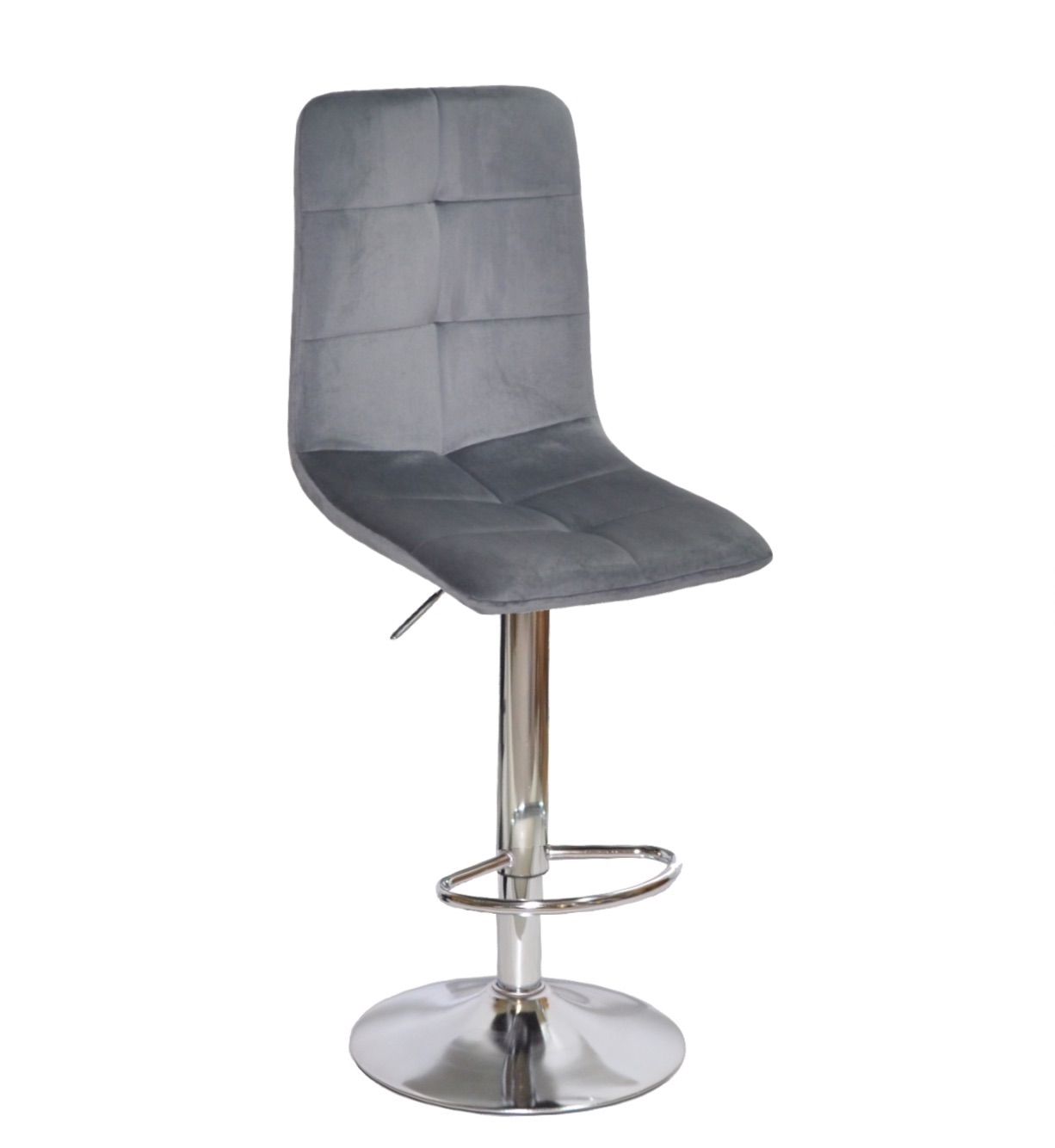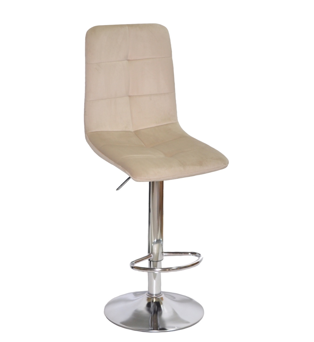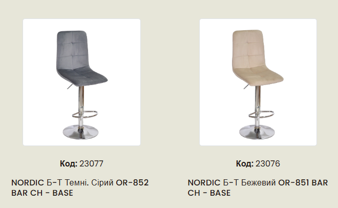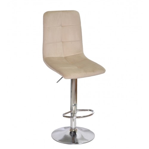 М'який барний стілець Nordic, на міцному золотом металевому каркасі, дуже зручний у посадці. Барний стілець Нордик можна часто побачити в салонах краси, інтер'єрах кафе-бутиків, ресторанів, зон відпочинку СПА, готелів, а також стілець прекрасно впишеться у вишуканий інтер'єр Вашої оселі або квартири. Спинка та сидіння обтягнуті велюровою тканиною, а основою стільця є металевий каркас (4 ніжки). Сидіння і спинка прострочені великими квадратами.