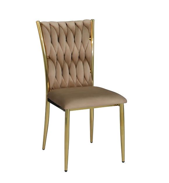 Стылець NUVO має м'яку оббивку, у вигляді плетених кіс із велюру. М'яка спинка має чудову бічну підтримку спини, а зручне сидіння та підлокітники допоможуть провести тривалий час з комфортом, сидячи у кріслі. Дизайн стыльця легко впишеться в інтер'єр Вашого будинку, апартаментів, офісу, салону краси, перукарні, ресторану, готелю.