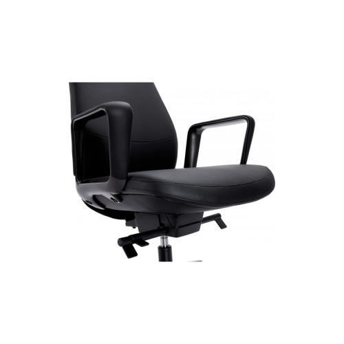Крісло розроблене з урахуванням анатомії тіла для комфортної роботи протягом тривалого часу. Спинка має поперековий вигин для підтримки правильного положення та можливість нахилу до 135°. Користувач може легко змінювати позицію – від активної під час роботи до розслабленої – під час перегляду відео. Широке м'яке сидіння рівномірно розподіляє вагу, зменшуючи навантаження на поперек та ноги, а фіксовані підлокітники з м'якими накладками забезпечують природне розміщення рук під час роботи. Додаткові налаштування висоти та глибини сидіння дозволяють адаптувати крісло під індивідуальні параметри користувача.