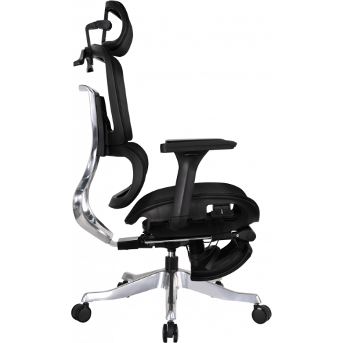 Підголовник, що регулюється, допомагає знизити навантаження в шийній зоні. Знімна вішалка для одягу на спинці крісла зберігає акуратний зовнішній вигляд піджака або жакету протягом дня. Підлокітники 4D регулюються за висотою, глибиною, шириною та кутом нахилу, адаптуючись під особливості статури користувача. Такий рівень персоналізації робить посадку зручною для людей різного зростання та комплекції.