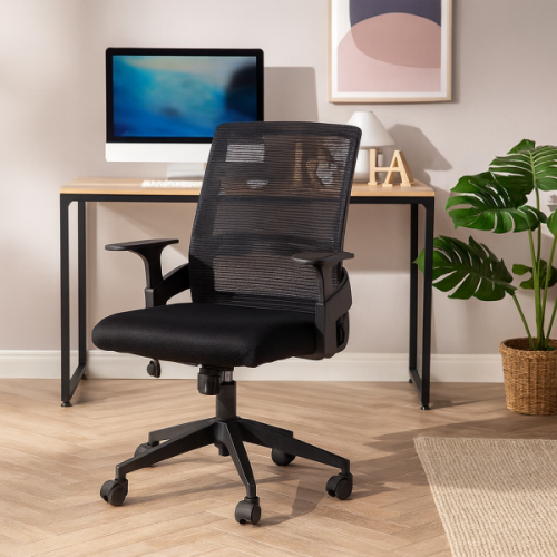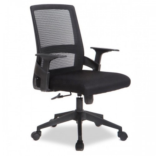 Офісне крісло чорного кольору, висока спинка з чорної сітки mesh, пластикові підлокітники чорного кольору, піднімається за допомогою хромованого газліфту, механізм tilt зрегулюванням висоти та жорсткості розгойдування, фіксації крісла в робочому вертикальному положенні, зручне та гнучке налаштування під вагу людини,чорна поліпропіленова основа з додаванням скловолокна, що робить її особливо міцною, обгумовані колеса. Розміри: загальна висота 92-100 см, ширина між підлокітниками 64 см, загальна глибина 67 см, висота посадки 45-53 см, висота до підлокітника 62-70 см, ширина подушки 50 см, глибина подушки 46 см, ширина спинки 45 см, висота спинки 53 см, довжина підлокітника 23 см, ширина хрестовини 59 см, товщина подушки 6 см. Кількість в коробці: 1 од.