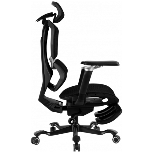 Крісло розраховане на користувачів зі зростом до 190 см та витримує навантаження до 120 кг. Завдяки м’якому сидінню, підтримуючій спинці з регульованим нахилом від 90° до 120° і регульованому підголівнику, модель легко підлаштовується під індивідуальні особливості користувача. Особливу увагу приділено підлокітникам — вони мають максимальну кількість напрямків регулювання, що дозволяє зменшити навантаження на плечі, передпліччя та кисті навіть під час тривалого сидіння.