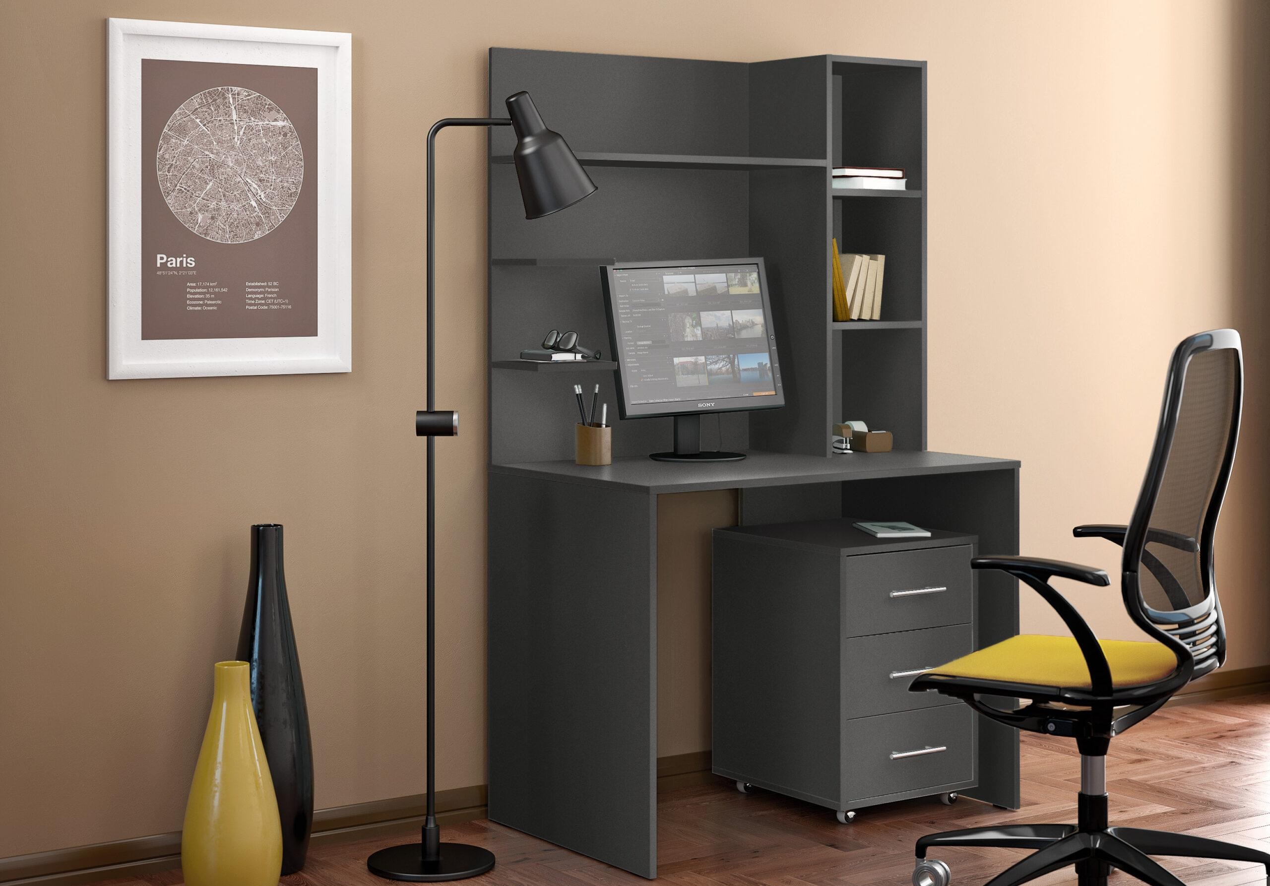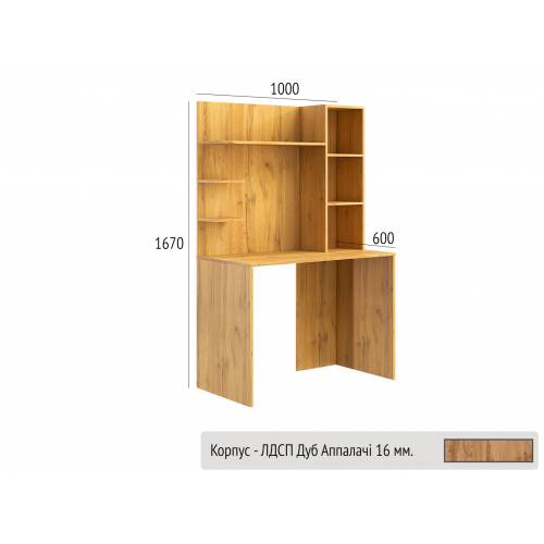 Стіл КС-03 — це зручне, практичне рішення для організації робочого простору. Завдяки вбудованим відкритим полицям і компактним розмірам, стіл стане ідеальним вибором як для домашнього кабінету, так і для дитячої кімнати чи офісу.