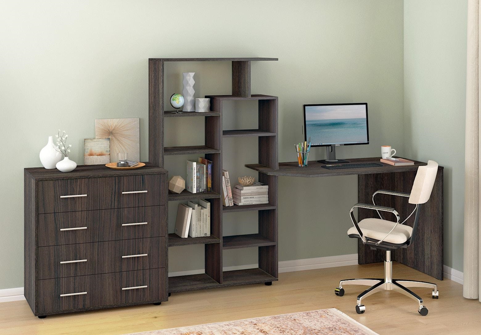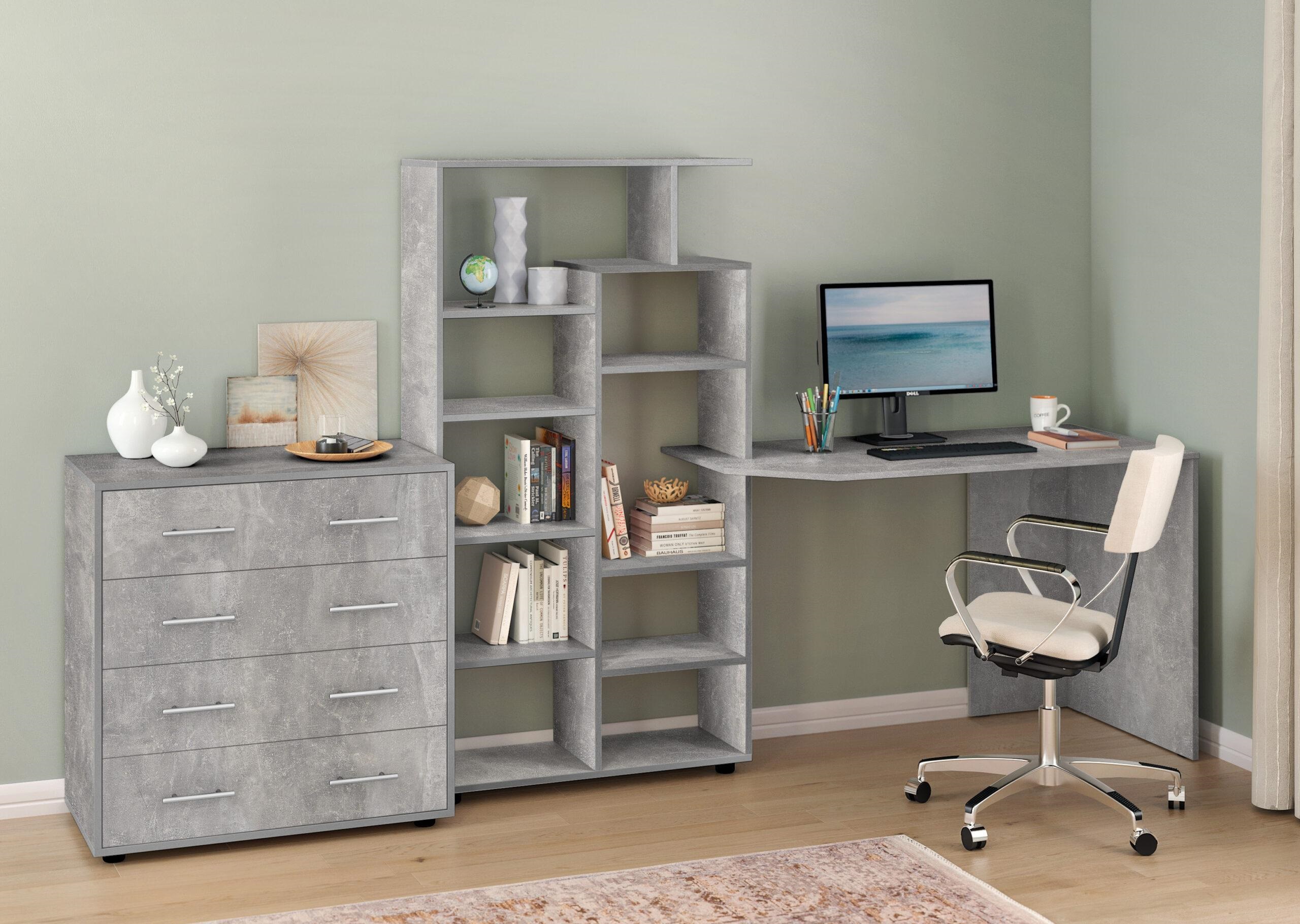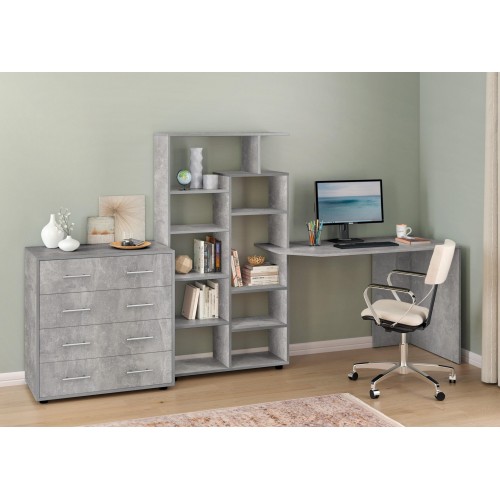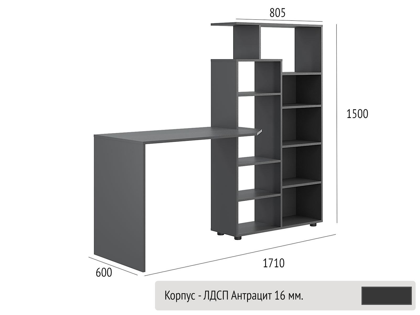 Стіл КС-08 — це універсальне рішення для тих, хто шукає зручне, компактне та стильне робоче місце. Завдяки вбудованому стелажу з численними відкритими полицями, він поєднує в собі функціональність письмового стола та системи зберігання.