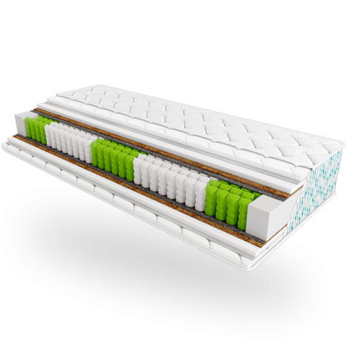 П’ятизональний пружинний блок рівномірно розподіляє навантаження по всій поверхні матраца. Завдяки зонуванню забезпечує делікатну, але ефективну ортопедичну підтримку, підтримуючи природне положення хребта та сприяючи глибокому, відновлювальному сну.