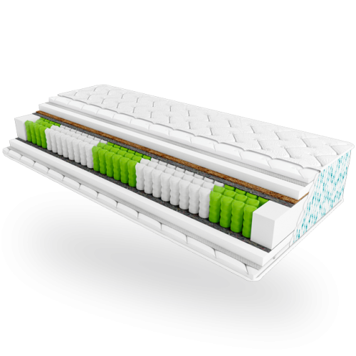 П’ятизональний пружинний блок із незалежними пружинами (256 шт./м2) забезпечує точкову адаптацію до контурів тіла, враховуючи фізіологічні особливості сплячого, що гарантує ідеальний комфорт для людей і з малою масою тіла, і з великою.