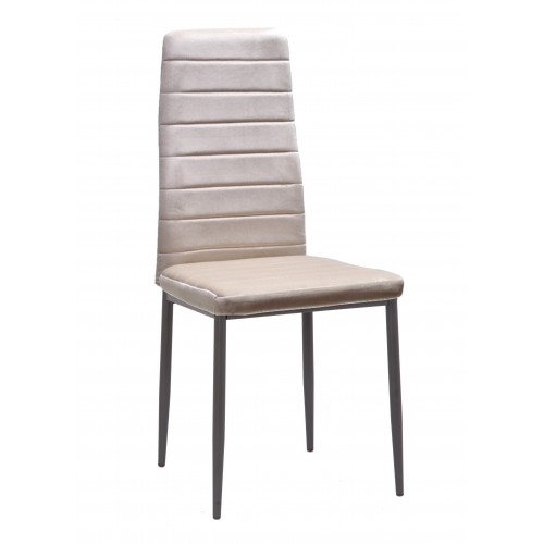 Стілець Піксель дуже зручний у посадці, його можна часто зустріти в інтер'єрах кафе-бутиків, ресторанів, зон відпочинку СПА, готелів, а також він легко впишеться в інтер'єр Вашого будинку або квартири. Спинка і сидіння обтягнуті велюровою тканиною і кріпляться на металевій конструкції з металевими ніжками в чорному кольорі.