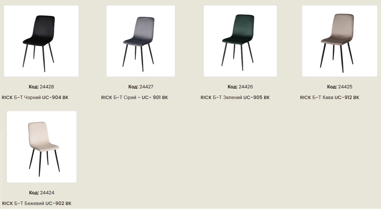 Затишне та зручне крісло завдяки своєму стильному універсальному дизайну легко впишеться в будь-який інтер'єр вітальні, кухні чи їдальні, а також чудово підійде для громадських приміщень, таких як кафе, ресторани, салони. Розширена спинка та глибоке сидіння забезпечують комфортну посадку. Оббивка виконана із щільної та зносостійкої тканини (вельвет). Наповнювачем є щільний пінополіуретан, який добре зберігає форму, не накопичує пил та чудово вентилюється. Розкішне та при цьому стримане крісло прикрасить Вашу обстановку у приміщенні та створить теплу приємну атмосферу.Стілець підсилений для кухні та вітальні м'який на чорних ніжках Onder Mebli RIK Б-Т