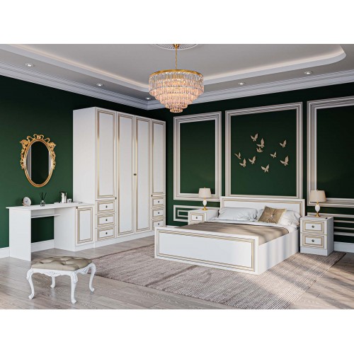 Спальня Тіффані — гармонійне рішення для облаштування сучасної спальні або багатофункціонального простору. Стіл з однією дверцятею забезпечує робочу зону з компактним зберіганням. Шафа з однією дверцятею та трьома шухлядами поєднує вертикальне й горизонтальне зберігання, дозволяючи раціонально впорядкувати речі.