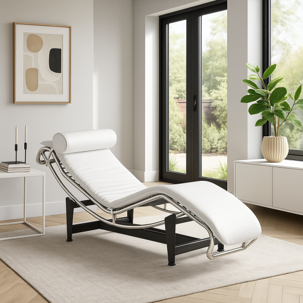 Шезлонг Лекор – культова модель у стилі модернізму Le Corbusier, що втілює гармонію форми, комфорту та функціональності. Каркас із нержавіючої сталі з хромованими елементами підкреслює легкість та витонченість конструкції. Оббивка виконана з м'якого шкірозамінника, приємного на дотик і простого у догляді. Особливості: знімна верхня частина, регульований кут нахилу, підголівник, що відстібається, стійка металева рама. Підходить для інтер'єру в сучасному, мінімалістичному або лофт-стилі. Підходить для будинку чи зони відпочинку. Розмір шезлонгу: 154*56*59 см