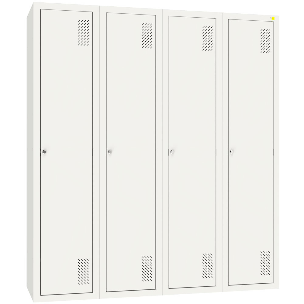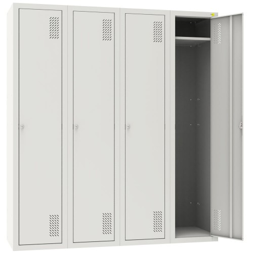 Металева шафа для одягу – надійне і практичне рішення для зберігання одягу і особистих речей. Шафа складається з міцного металевого каркасу, виконаного з якісної сталі, що забезпечує стійкість і довговічність конструкції. Дверцята шафи також виготовлені з металу, забезпечуючи додаткову стійкість та захист від вандалізму. Металеві шафи вкриті спеціалізованою порошковою фарбою світло-сірого кольору (RAL 7035). Шафа має достатньо великий внутрішній простір, де можна зручно розмістити одяг, взуття та аксесуари. Дверцята оснащені замком, що забезпечує безпеку зберігання ваших речей.