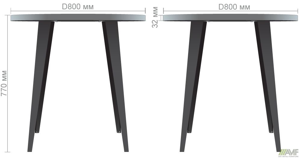 Діаметр стільниці:800 мм Висота виробу:770 мм