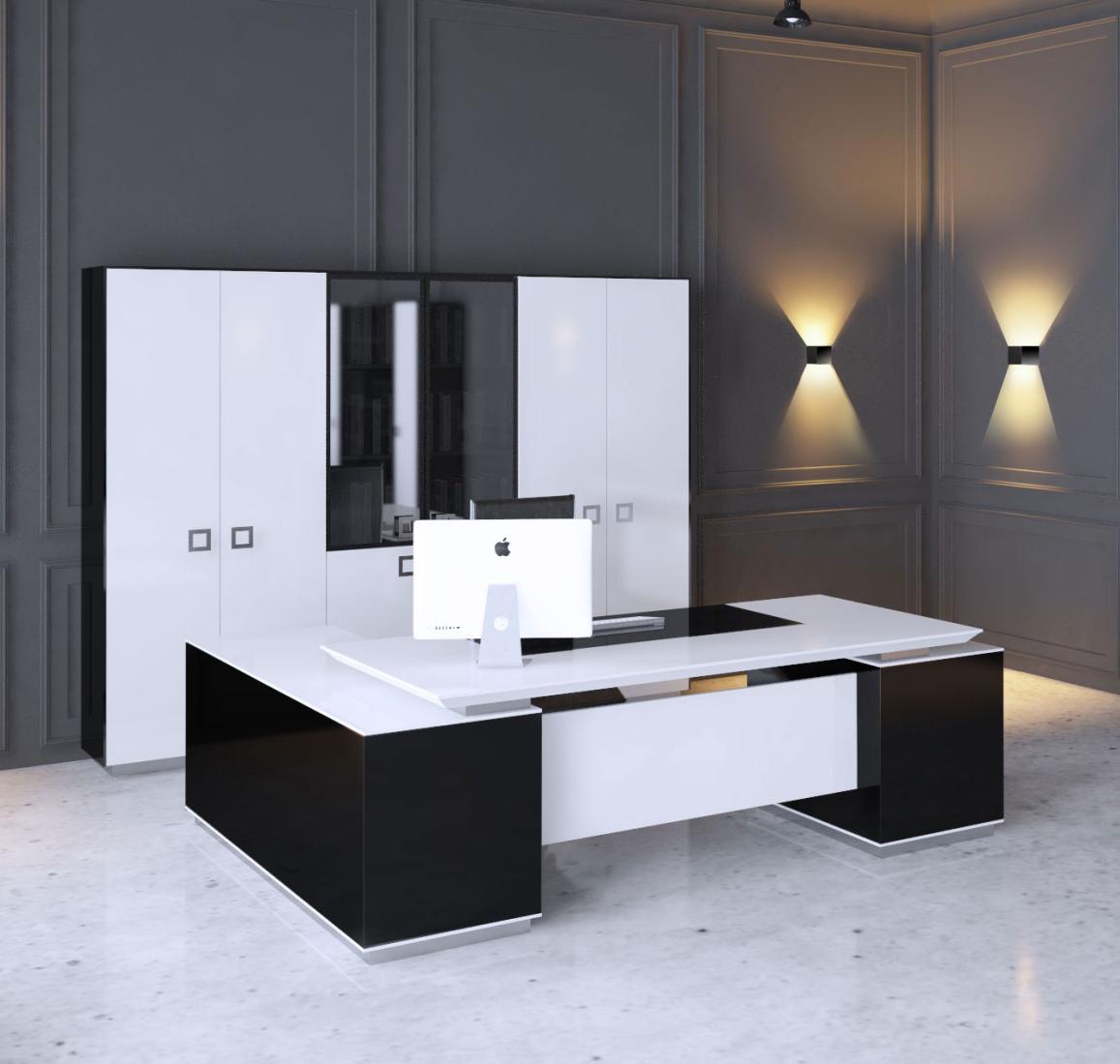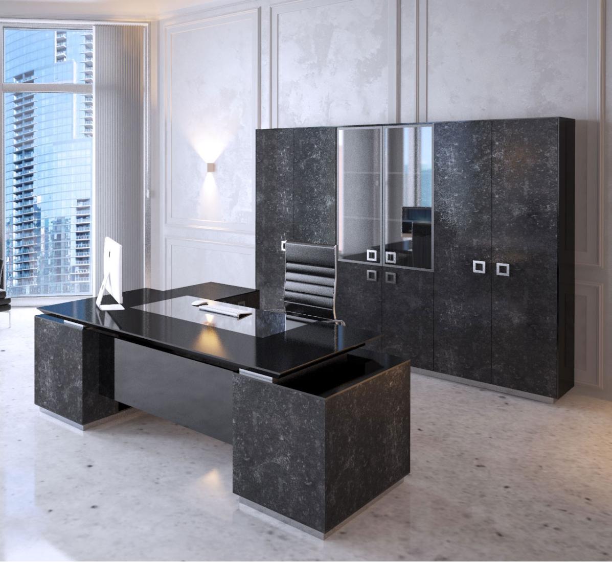 Кабінет керівника Morion підійде для тих, хто цінує сучасний стиль, високу функціональність та відмінну якість. Меблі, призначені для кабінету директора, повинні бути зручними, мати ретельно продуману конструкцію і відповідати іміджу компанії або підприємства. Кабінет Morion гідно оцінять керівники сучасних фірм, які хочуть створити та підтримувати імідж компанії, яка йде «в ногу з часом». Меблі Morion виконані в стилі «hi-tech» у чорно-білій гамі, вони відрізняються чіткістю граней, гармонійністю форм і ретельно продуманою геометрією. Меблі мають оригінальний дизайн, тому вигідно відрізняються від однотипних комплектів для офісу