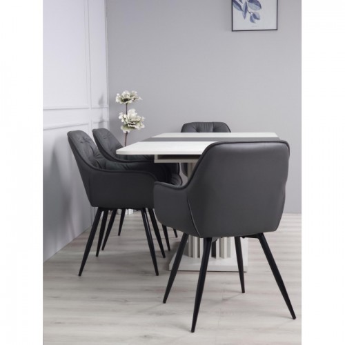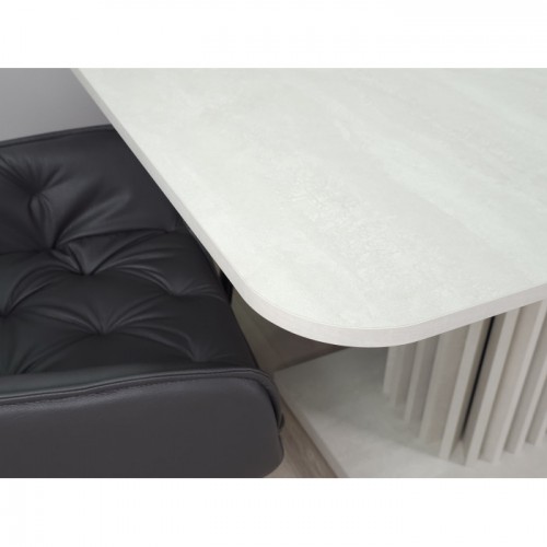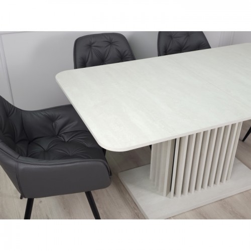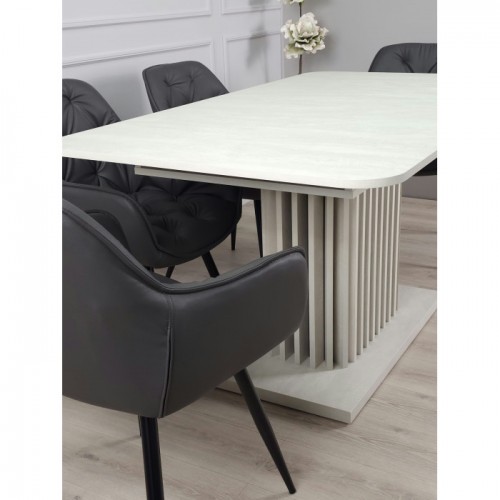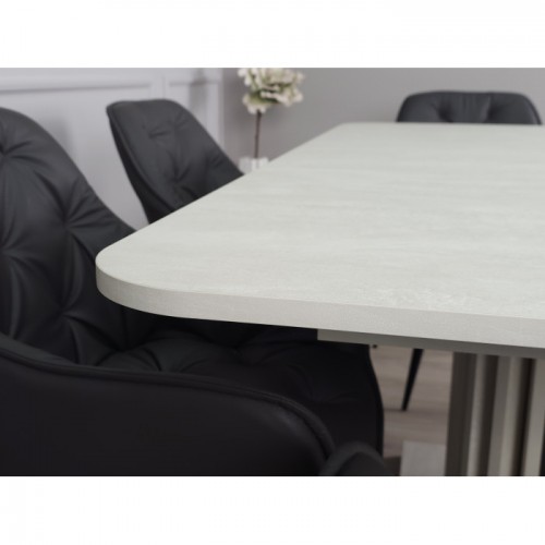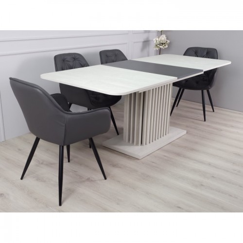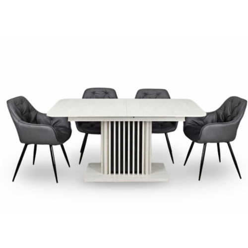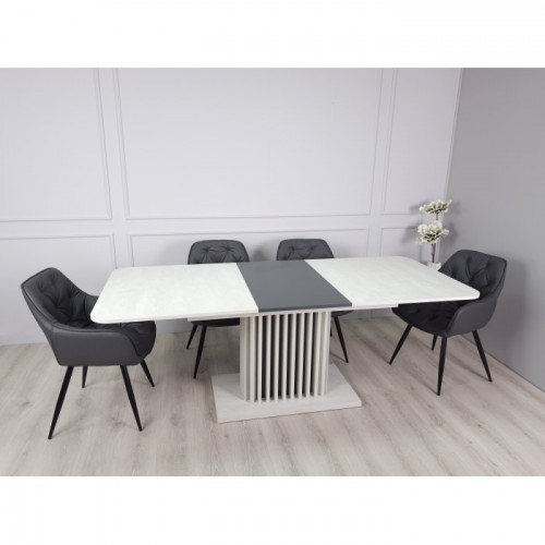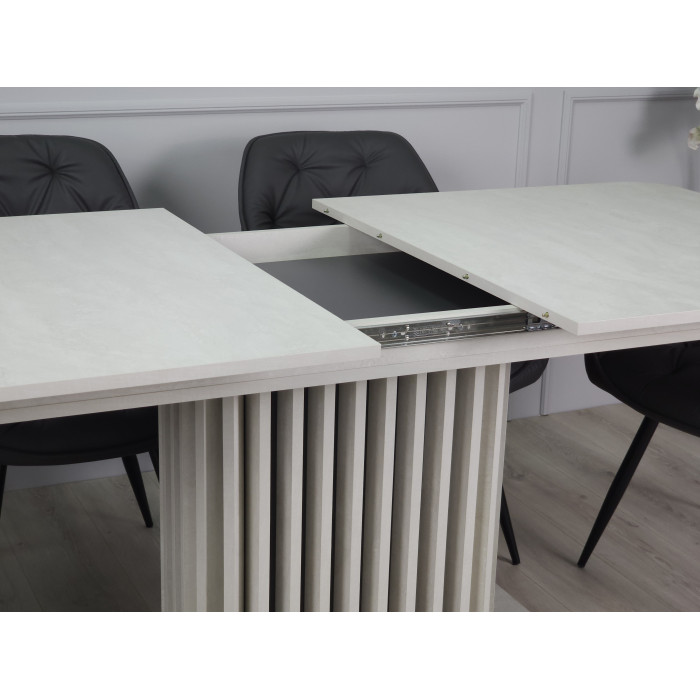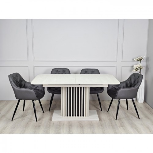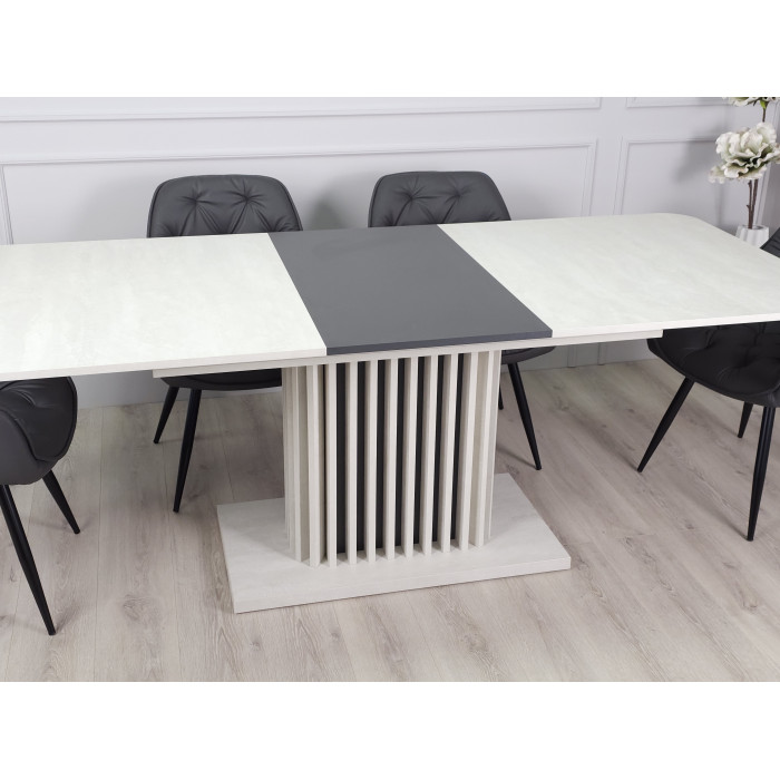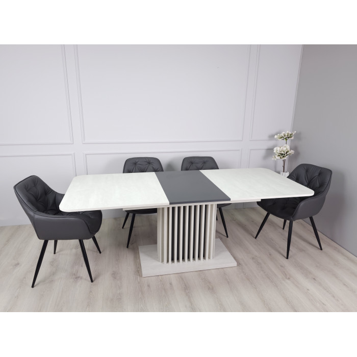 Стіл обідній розкладний CASANDRA S/A MAX 160(210)x90 шовковий камінь / антрацит! Ця витончена модель від Intarsio – справжнє втілення стилю та сучасності. Завдяки високій якості та легкості цього предмету меблів, ваш інтер'єр отримає дотик вишуканості та краси. Ми дбаємо про ваше комфортне життя та здоров'я, тому використовуємо тільки екологічно чисті матеріали для виробництва цього виробу, що робить його абсолютно безпечним для вас та ваших близьких. Наш товар постачається в оригінальній упаковці, разом із докладною інструкцією та всіма необхідними комплектуючими, що дозволяє вам легко та без особливих зусиль зібрати його самостійно. Основні характеристики: