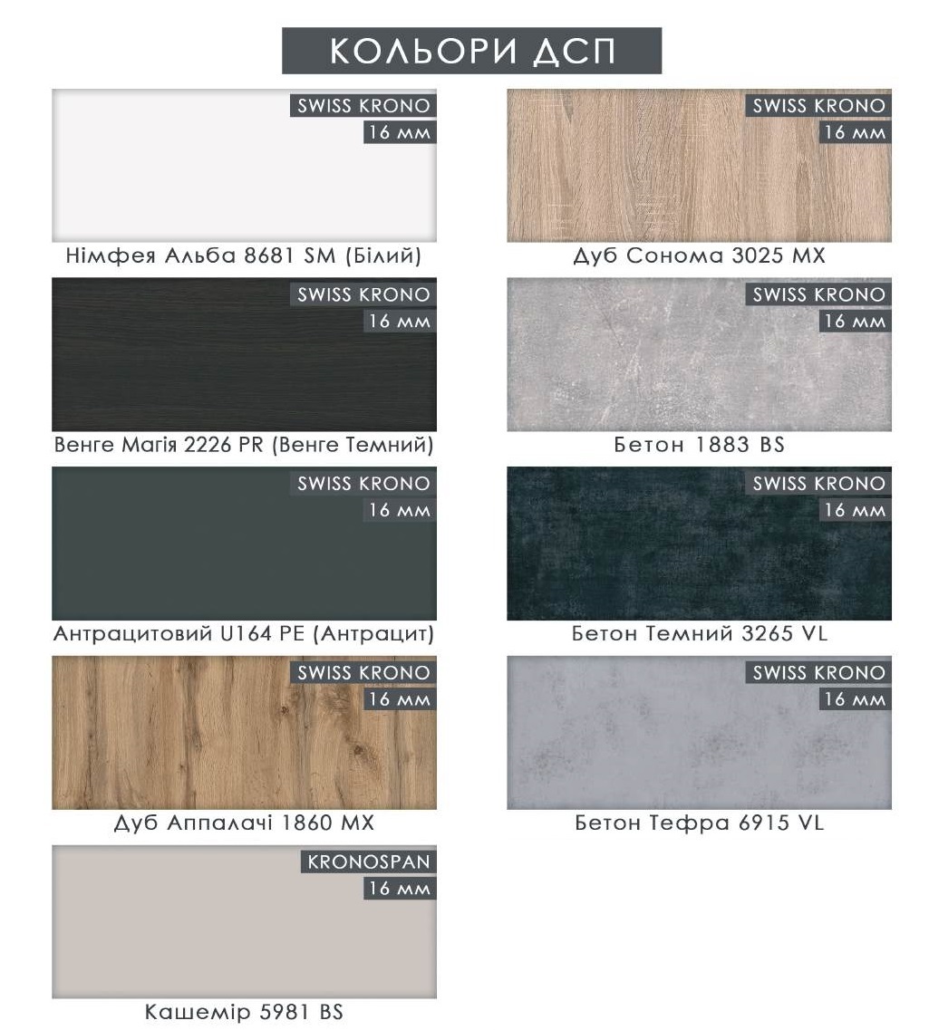 | Стільниця | Ламіноване ДСП (ЛДСП) |