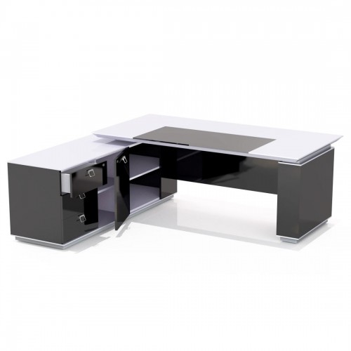 Центральна вкладка в робочих столах виконана із чорного скла «Лакобель»