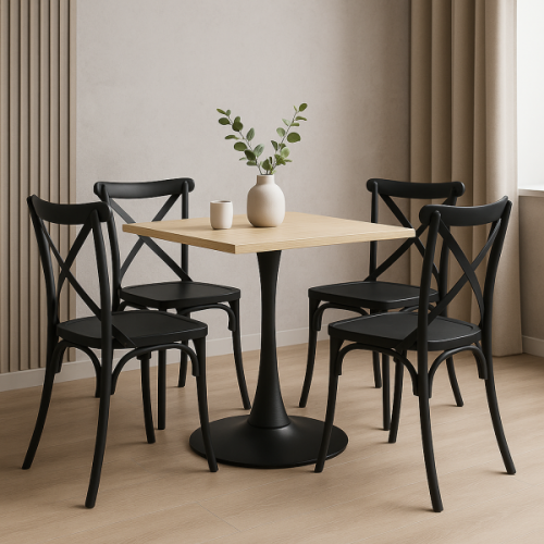 Сучасний, стильний та практичний обідній стіл від Група СДМ — ідеальне рішення для кафе, барів, ресторанів, літніх майданчиків та домашнього використання. Стільниця виготовлена з високоякісного матеріалу HPL, що поєднує привабливий дизайн і надзвичайну стійкість до вологи, температурних коливань та механічних пошкоджень. Стійка металева опора забезпечує надійність і довговічність. Стільниця універсальна — не має попередньо зроблених отворів, що дозволяє встановити опору у зручному положенні, простий монтаж — необхідно лише намітити місця кріплення та прикрутити опору фурнітурою, яка входить у комплект. Підходить як для використання в приміщенні, так і на відкритих терасах. Квадратний стіл від Група СДМ — це надійність, стиль і комфорт у кожній деталі. Замовляйте прямо зараз і створіть зручний простір для відпочинку чи бізнесу! Розмір 70*70 см, опора металева чорного кольору, діаметр унизу 50 см, квадратне кріплення 29 см на 29 см вгорі, загальна висота столу 73 см.