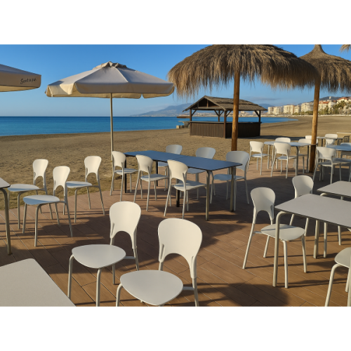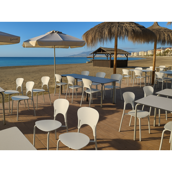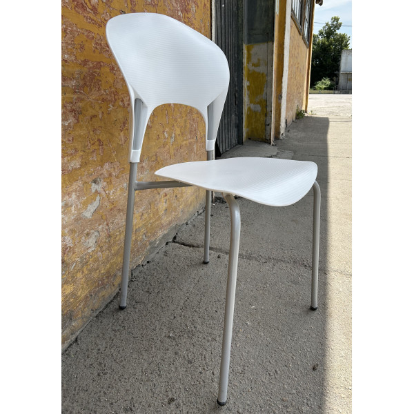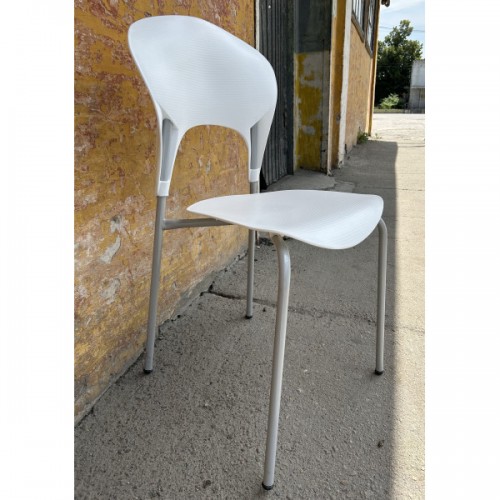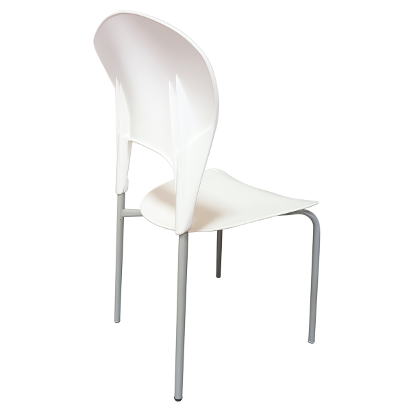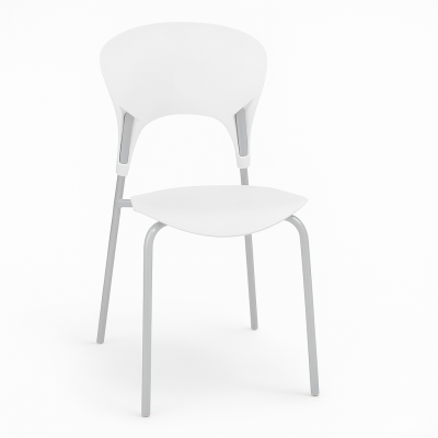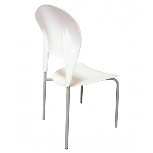 Стілець із поліпропіленовим сидінням і спинкою та ніжками з пофарбованої сталі з матовою поверхнею, штабельований, ставиться стопками, металевий каркас забезпечує стійкість і міцність моделі, а пластиковий корпус надає виробу стильного вигляду.