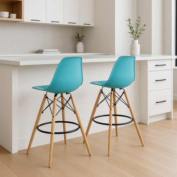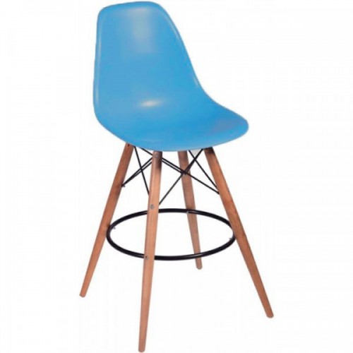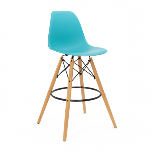 Стілець високий, табурет, сидіння з пластика, висока зручна спинка, високі стійкі дерев'яні ніжки, металева кругла підніжка всередині, фарбована, колір чорний, барний стілець не регулюється по висоті, не повертається, розмір: висота від підлоги до верхнього краю спинки 112 см, ширина сидіння 46 см, глибина 40 см, висота спинки 42 см, висота від підлоги до сидіння 70 см. Кількість у коробці: 4 шт.
