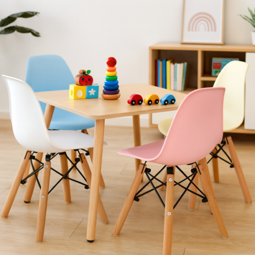 Стілець пластиковий дитячий, сидіння із пластику поліпропілен, ніжки дерев'яні, дерево натуральний бук, світлий відтінок, розмір стільця: ширина сидіння 31 см, висота спинки 26 см, глибина сидіння 27 см, висота стільця від полу до верхнього краю спинки 57 см, висота посадки 32 см. Дитячий стілець виготовлений з якісного поліпропілену, дерев'яні ніжки з бука роблять стійкою конструкцію і перешкоджають надмірному ковзанню по підлозі. Пластикові меблі здатні витримати інтенсивне використання та характеризуються надійністю та зносостійкістю, а поліпропілен зберігає відмінний зовнішній вигляд протягом тривалого часу. Кількість у коробці: 4 од.