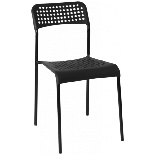 Сидіння та спинка стільця виготовлені з якісного пластику, що робить його легким, але водночас досить міцним. Квадратне сидіння надає достатньо місця для комфортного розміщення, а відкрита спинка сприяє циркуляції повітря, що особливо важливо в теплу пору року. Відсутність оббивки полегшує догляд за стільцем, роблячи його ідеальним варіантом для використання в місцях, де важлива практичність та можливі забруднення.