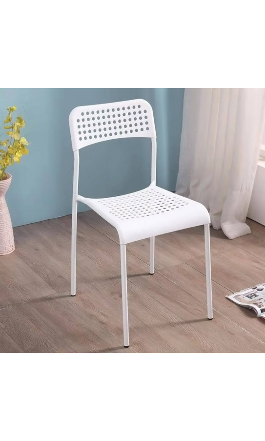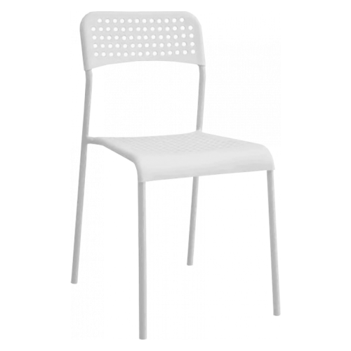 Сидіння та спинка стільця виготовлені з якісного пластику, що робить його легким, але водночас досить міцним. Квадратне сидіння надає достатньо місця для комфортного розміщення, а відкрита спинка сприяє циркуляції повітря, що особливо важливо в теплу пору року. Відсутність оббивки полегшує догляд за стільцем, роблячи його ідеальним варіантом для використання в місцях, де важлива практичність та можливі забруднення.