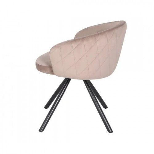 Стілець з оксамитовим сидінням у світлому темному бежевому кольорі стане яскравим акцентом вашої кухні чи обідньої зони. Завдяки металевому каркасу з чорним покриттям, який поєднується з елегантним дизайном, ця модель виглядає стильно та сучасно. Його функція повороту на 360º забезпечує максимальний комфорт під час спілкування за столом. Цей стілець не лише прикрасить ваш інтер'єр, але й стане ідеальним рішенням для тривалого використання.