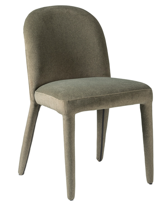 Оббивка стільця виконана з м’якого та розкішного мохеру кольору "макадамія". Цей теплий і приємний відтінок створює відчуття затишку та гармонії, додаючи приміщенню елегантного вигляду. Мохер, відомий своєю довговічністю, стійкістю до зносу та приємною текстурою, дарує максимальний комфорт під час сидіння.