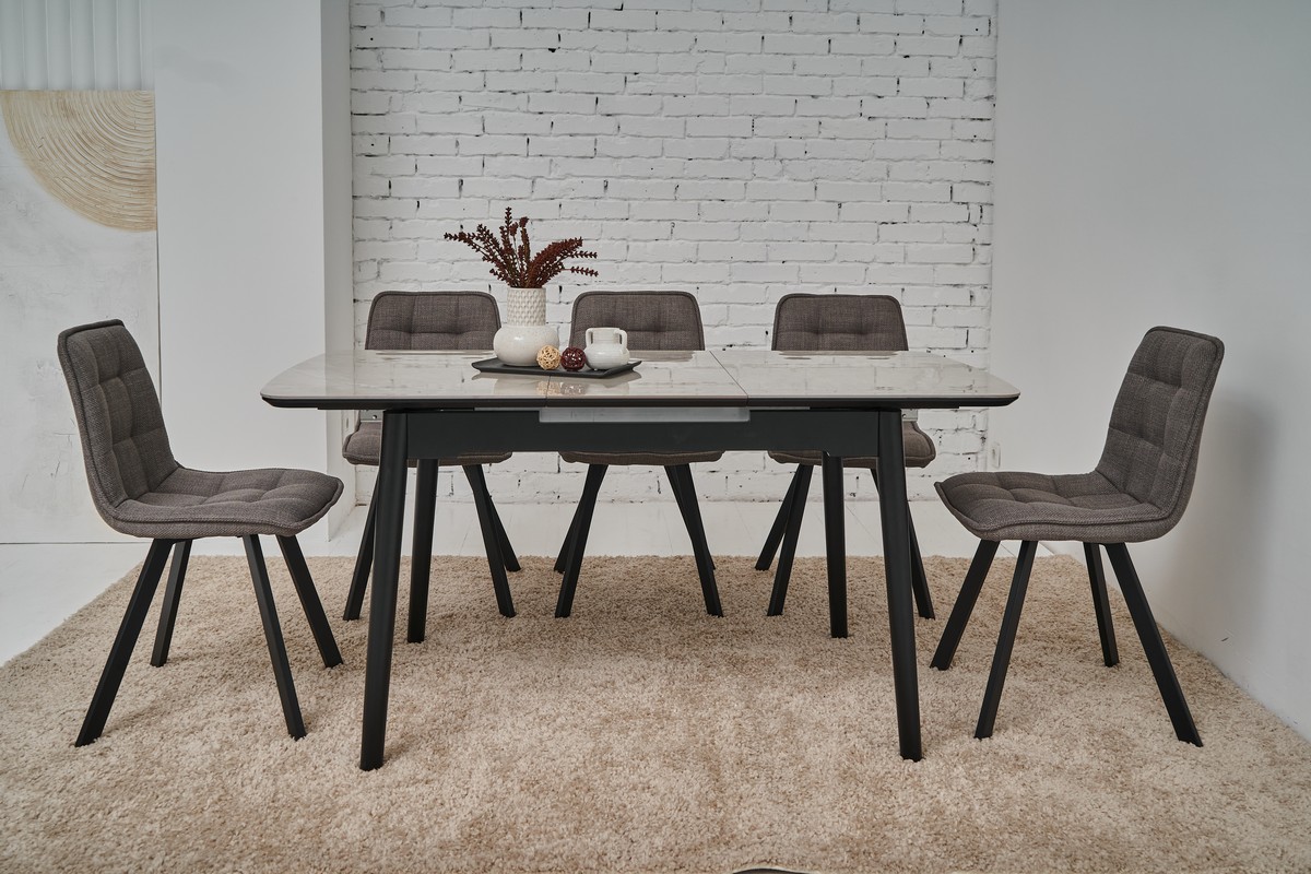 Чорна металева основа надає стільцю сучасного вигляду та забезпечує його стійкість і міцність. Контраст між оббивкою айворі та чорними ніжками створює стильний і збалансований образ.