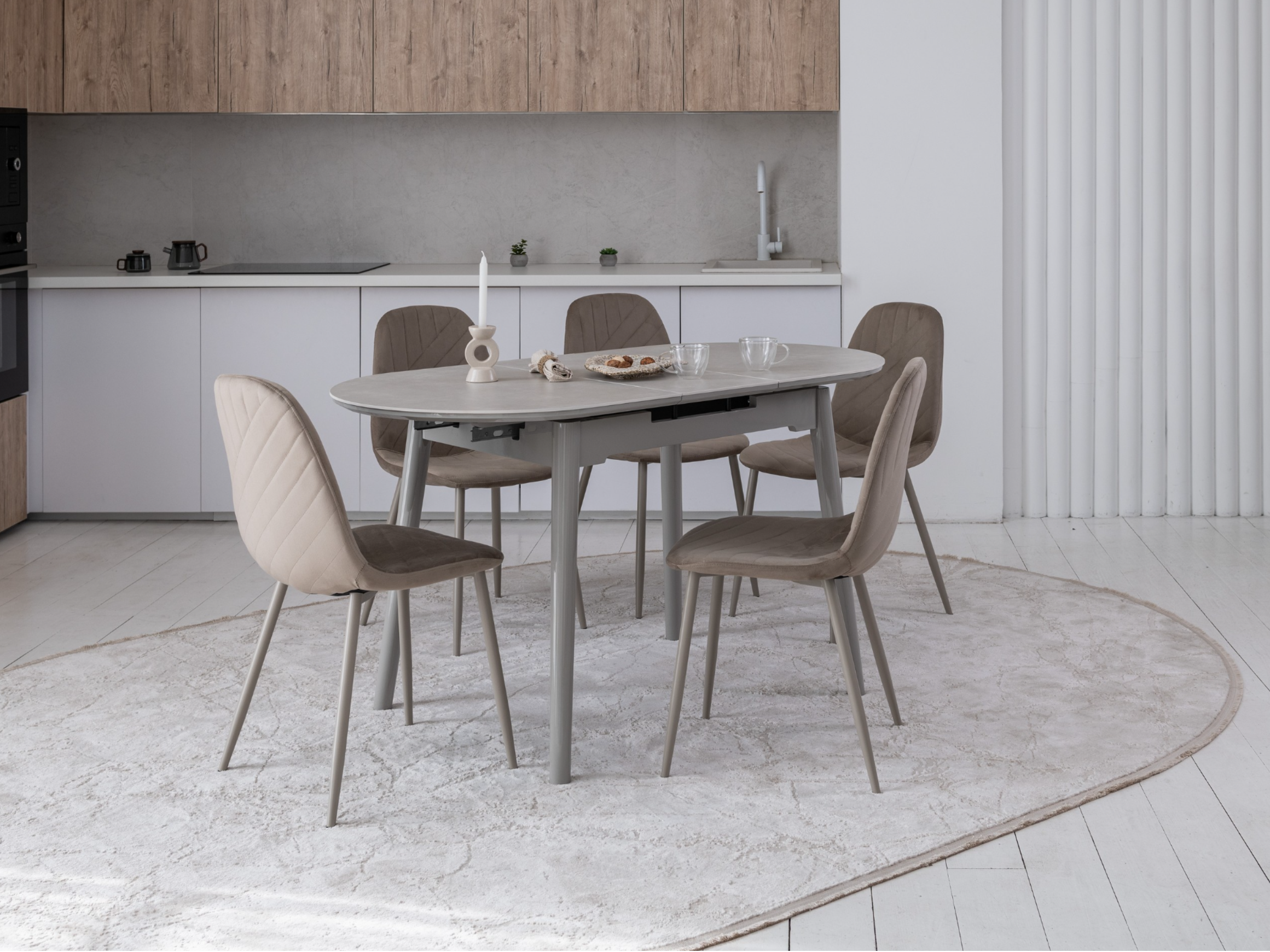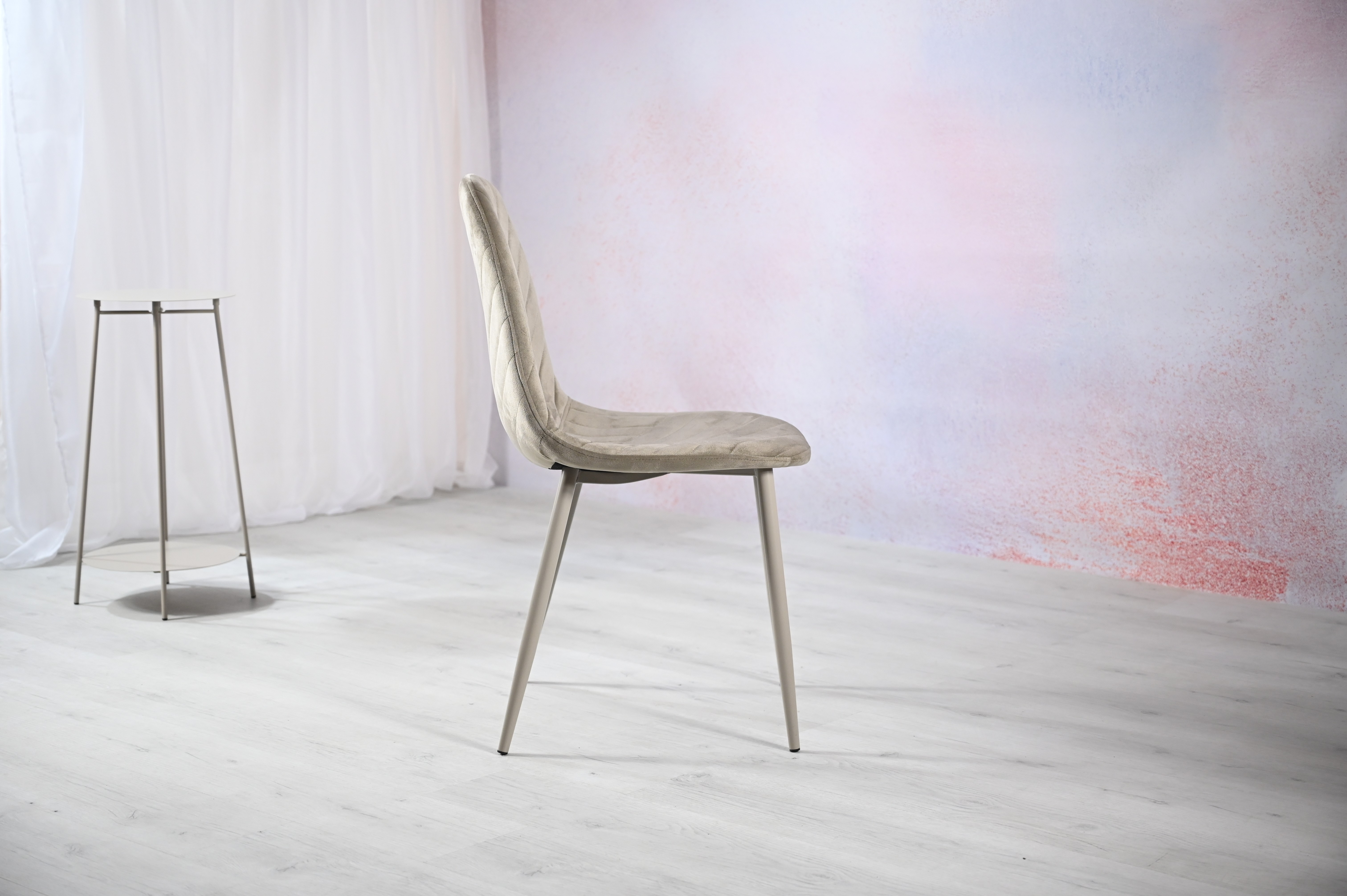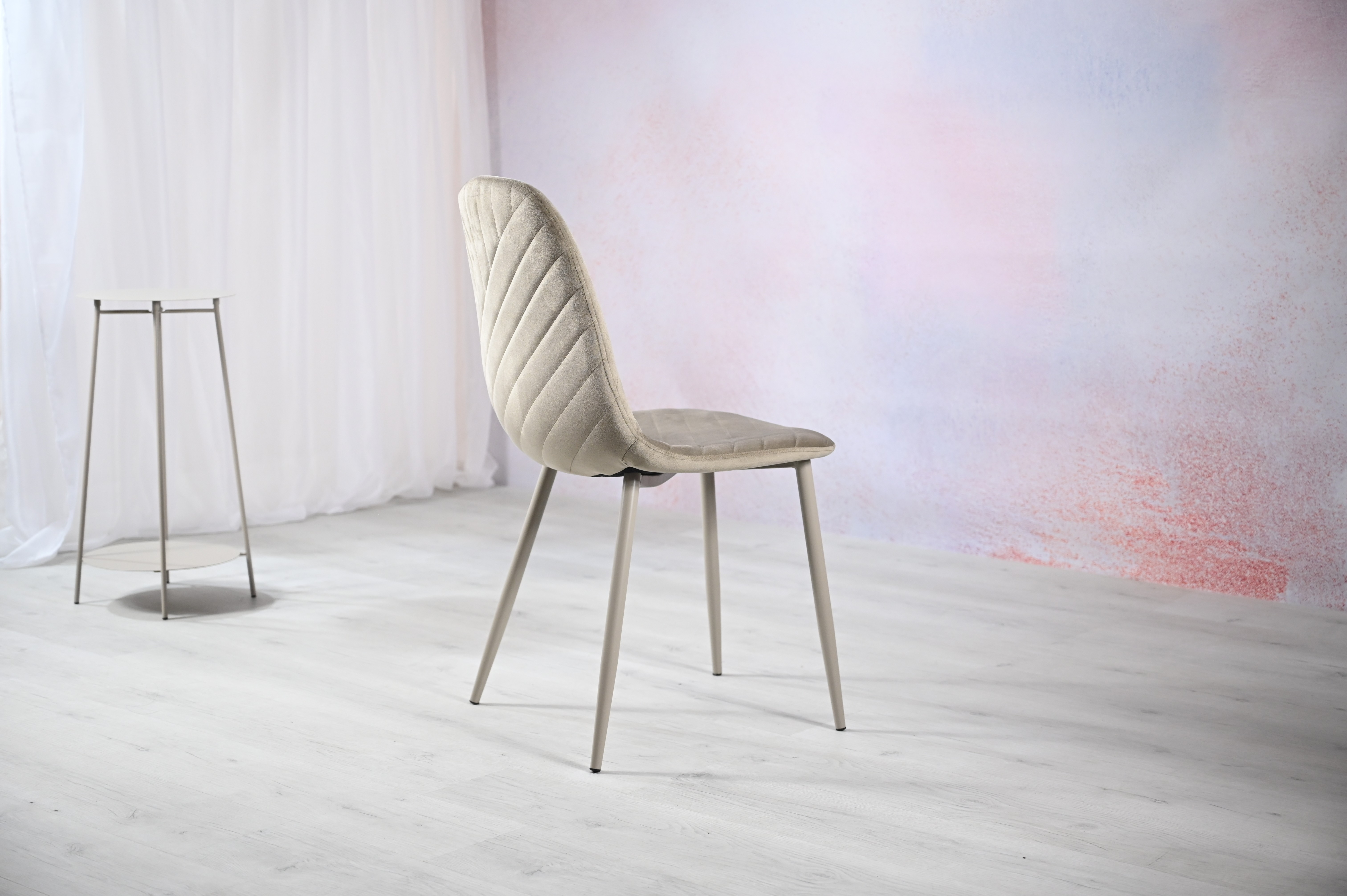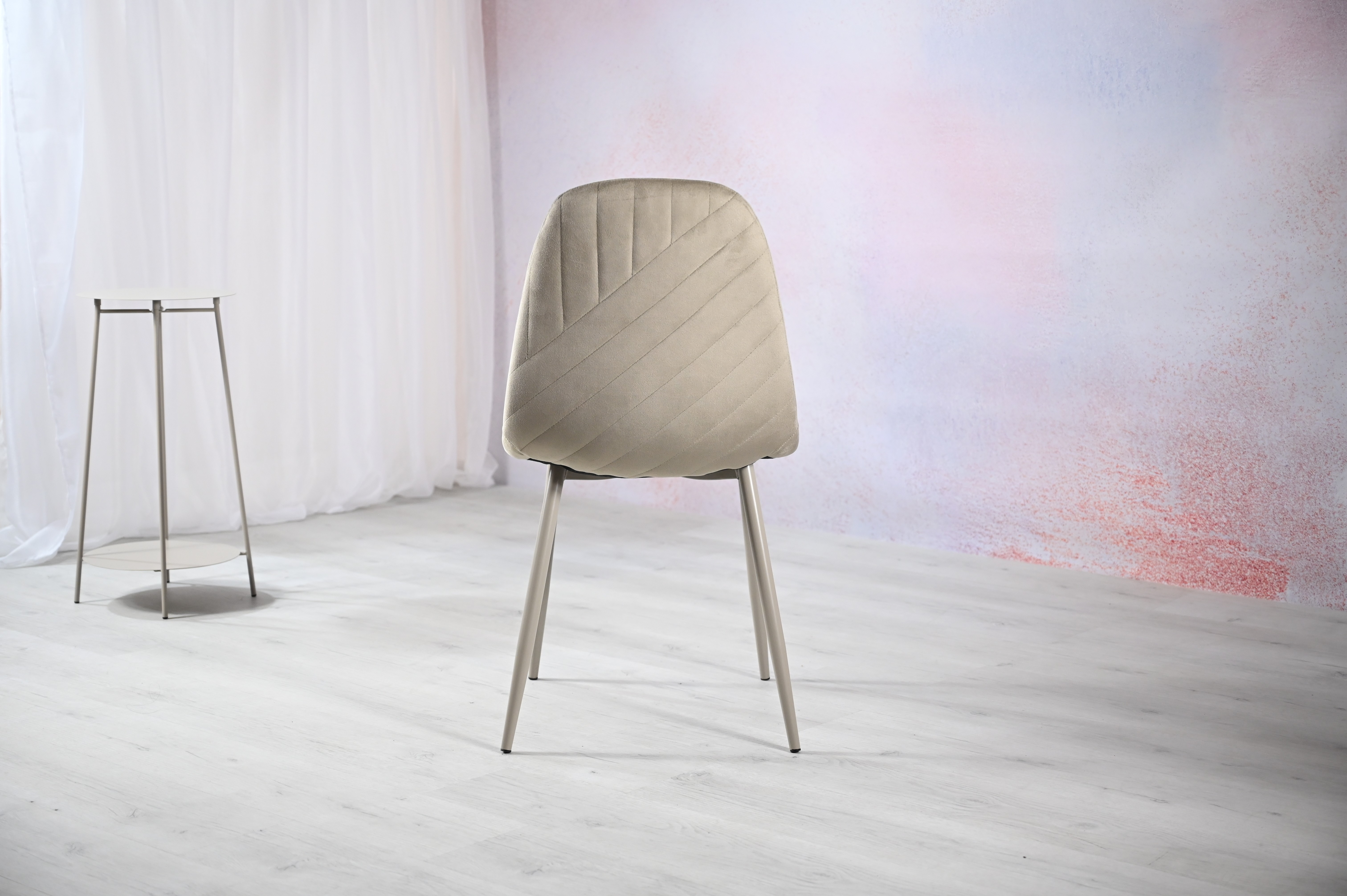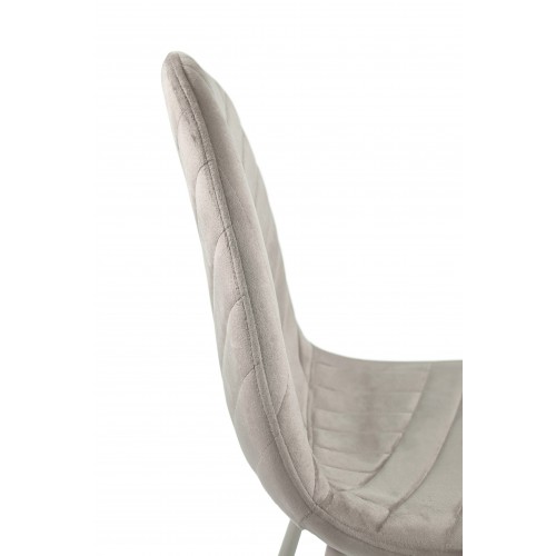 Оббивка з велюру не тільки виглядає розкішно, але й приємна на дотик. Велюр має м’яку текстуру та стійкий до зносу, що робить стілець не лише красивим, але й довговічним. Металева основа пофарбована в колір капучино, що завершує стильний образ стільця та надає йому міцності.