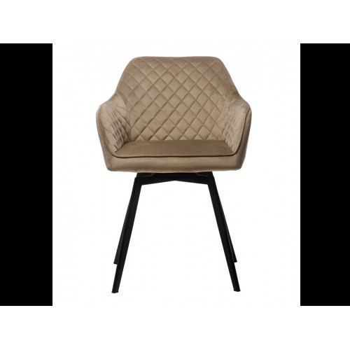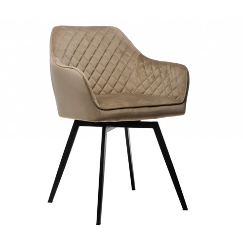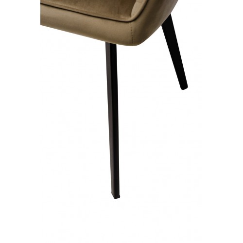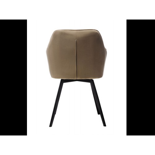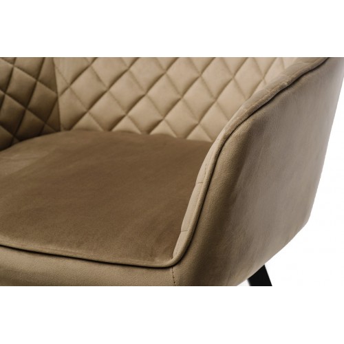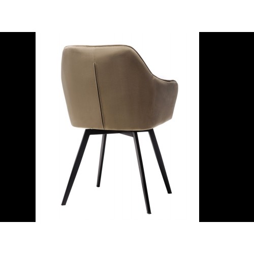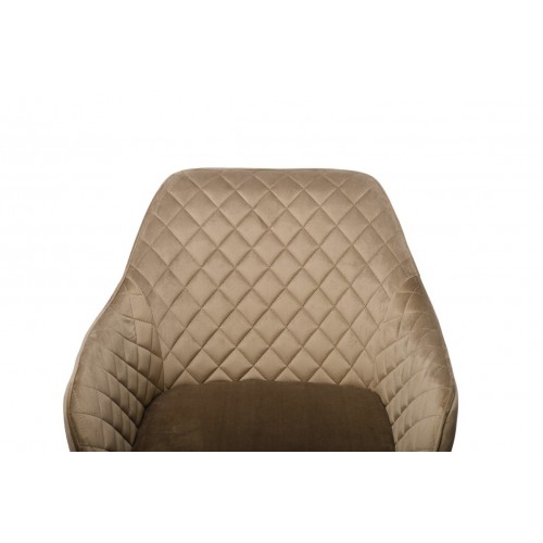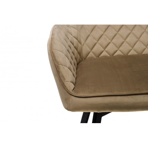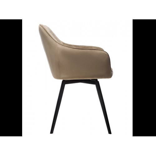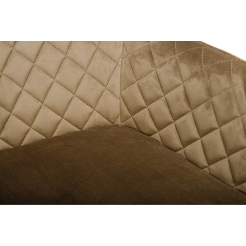 Стілець в м’якому велюрі в теплих капучинових відтінках, який не лише виглядає елегантно, але й приємний на дотик. Він створює комфортне місце для сидіння, ідеально підходячи для довгих годин відпочинку або роботи.