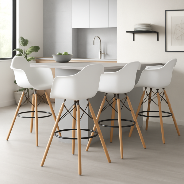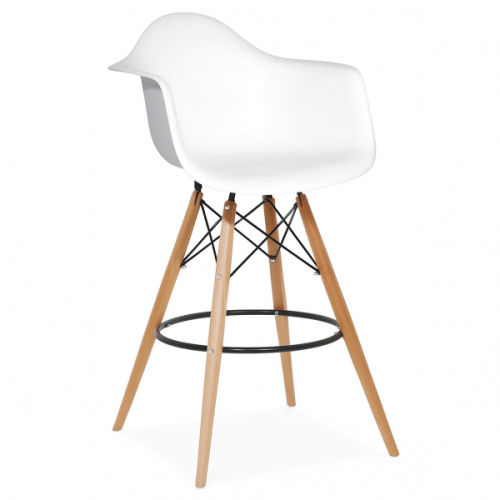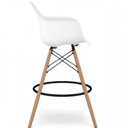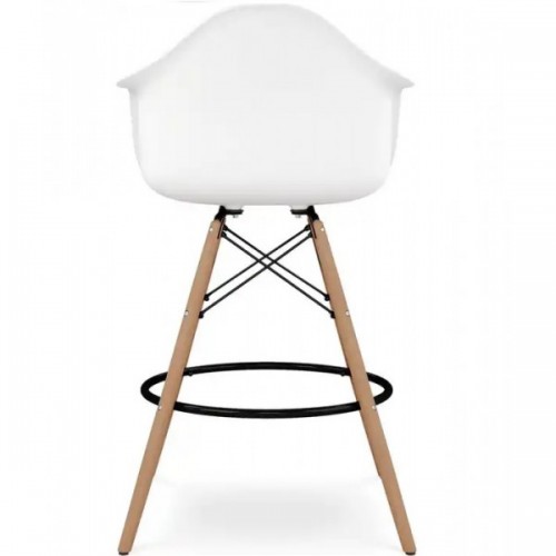 Стілець високий, табурет хокер, сидіння із пластику, високі дерев'яні ніжки, металева кругла підніжка пофарбована в чорний колір, барний стілець не регулюється по висоті, не повертається, розмір: висота від підлоги до верхнього краю спинки 108 см, ширина сидіння 62 см, глибина сидіння 62 см, висота від підлоги до сидіння 70 см. Кількість у коробці: 2 шт.