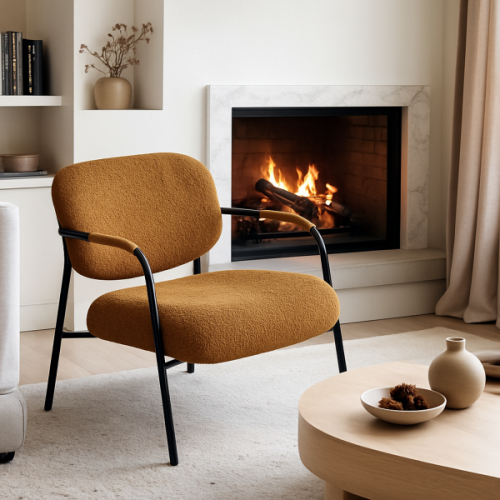 Стильне та комфортне крісло, виконане в сучасному дизайні, стане акцентом у будь-якому інтер’єрі. Оббивка з м’якого букле створює приємну текстуру та додає виробу затишного вигляду. Насичений відтінок робить крісло виразним елементом декору, гармонійно поєднуючись із натуральними та нейтральними кольорами. Переваги та особливості: м’яка оббивка букле – сучасний трендовий матеріал, ергономічна форма сидіння та спинки забезпечує зручність, міцний металевий каркас чорного кольору, легкий сучасний силует підходить для вітальні, спальні, зони відпочинку чи офісного лаунжу. Крісло чудово вписується в сучасні, скандинавські, мінімалістичні та японді-інтер’єри. Воно стане стильним акцентом біля журнального столика, у читальній зоні або у світлому затишному куточку вашого дому. Розмір крісла: ширина сидіння 72 см, глибина сидіння 72 см, висота посадки 39 см, вісота крісла до верха спинки 75 см.