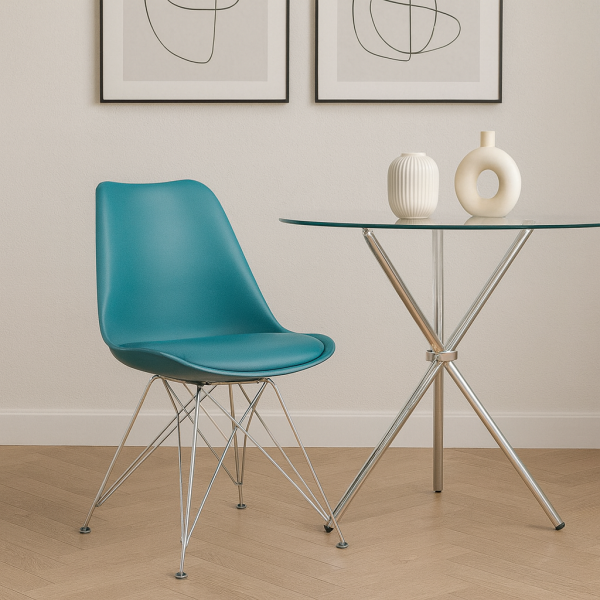 Стілець для затишного кафе або вашої кухні, сучасний дизайнерський стиль, матеріал сидіння та спинки поліпропілен, на сидінні м'яка подушка, матеріал оббивки шкірозамінник, подушка не знімається, ніжки металеві з хромованим покриттям, особлива форма ніжок забезпечує максимальну стійкість та комфорт, розмір стільця: ширина сидіння 50 см, глибина сидіння 43 см, висота від підлоги до верхнього краю спинки 81 см, висота посадки 45 см. Стілець Тауер С з зручною спинкою та сидінням прикрасить будь-яке приміщення, чи то їдальня, офісна переговорна, кабінет або хол. Силует стільця мінімалістичний: строгі ніжки зі сталі з хромованим покриттям, класична форма спинки для кращої підтримки та правильної постави. Стриманий, лаконічний дизайн відмінно впишеться в сучасний інтер'єр практично будь-якого простору і дасть правильний настрій. Завдяки зручній посадці - це чудове рішення для кафе, зони очікування на ресепшн та у фойє бізнес-центрів. Кількість у коробці 2 од.
