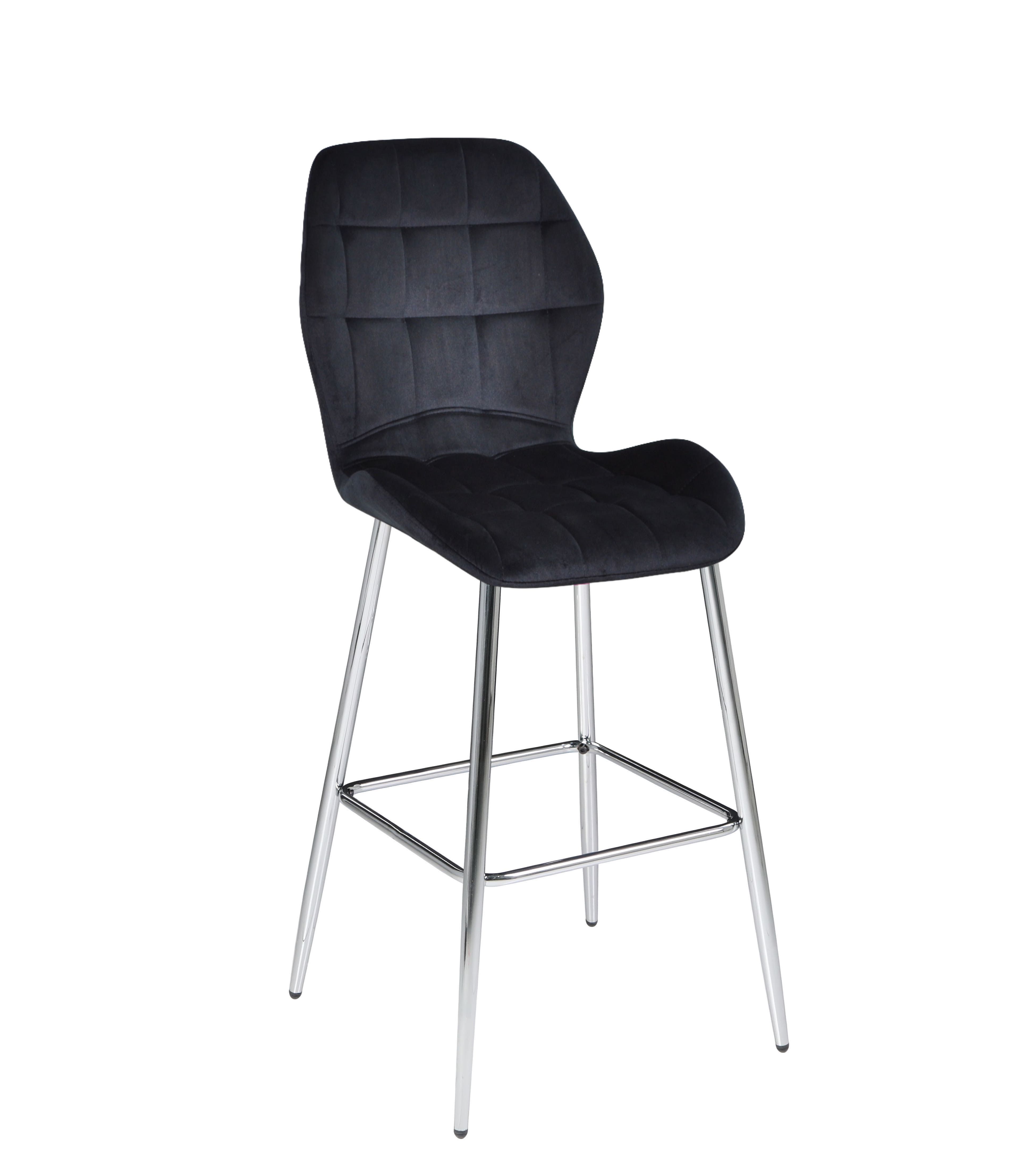 Барний стілець Phil (Vigo) Bar 75 ML (BK) обладнаний м'яким сидінням простроченим дрібними квадратами, з меблевого велюру та екошкіри (шкіра), на вибір. Високий барний стілець Vigo базується на металевому каркасі з чотирма білими металевими ніжками. Стілець барний Філ — це проста, але ретельно продумана модель підходить до інтер'єрів у скандинавському стилі, у стилі модерн, лофт і мінімалізм.